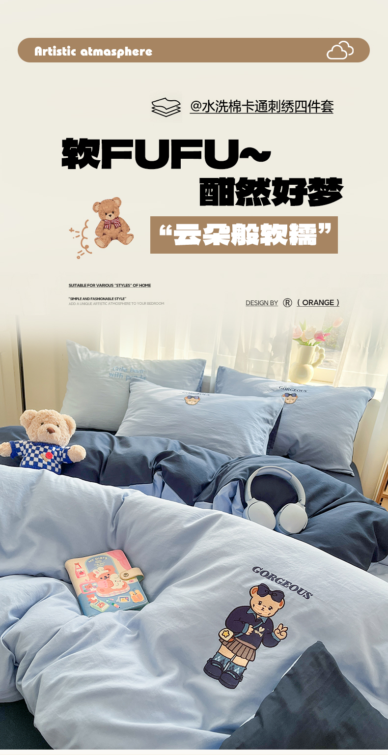 当前位置: 91家纺网 > 商品网购 > 床品套件 > 四件套 > 水洗棉四件套 > 优承佳生活馆 2026新款软糯云朵棉刺绣三件套四件套单被套小熊系列-系列一 耶比熊