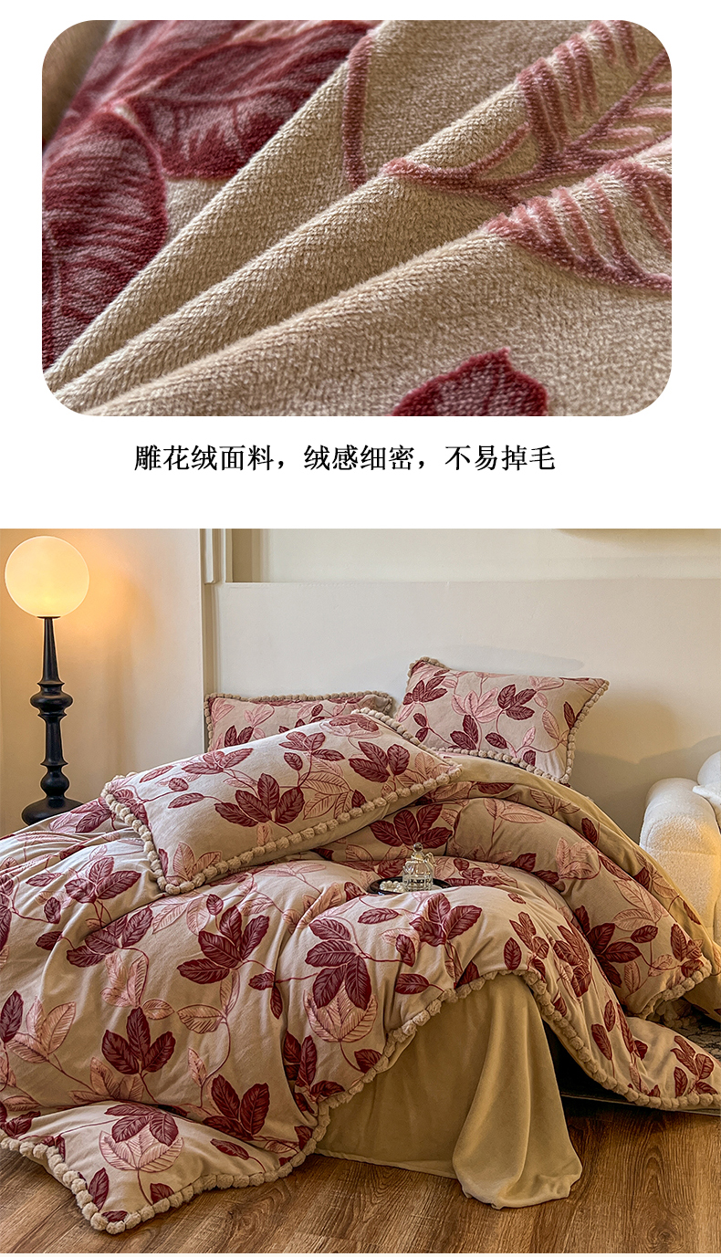 当前位置: 91家纺网 > 商品网购 > 床品套件 > 四件套 > 雕花绒四件套 > 梵克保罗 2025新款立体雕花绒球球四件套(提供买家秀) 叶繁