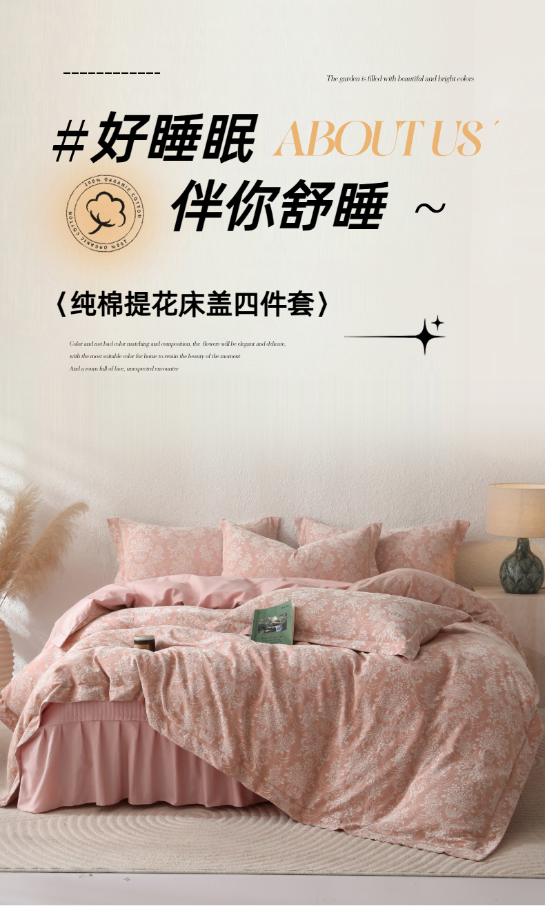 (总)金艾草 2024新款水洗全棉浮雕提花床盖四件套,圣罗纳-灰,片叶情-豆绿,罗曼-浅绿,蜀锦-茉莉白,轻颜-珊瑚粉