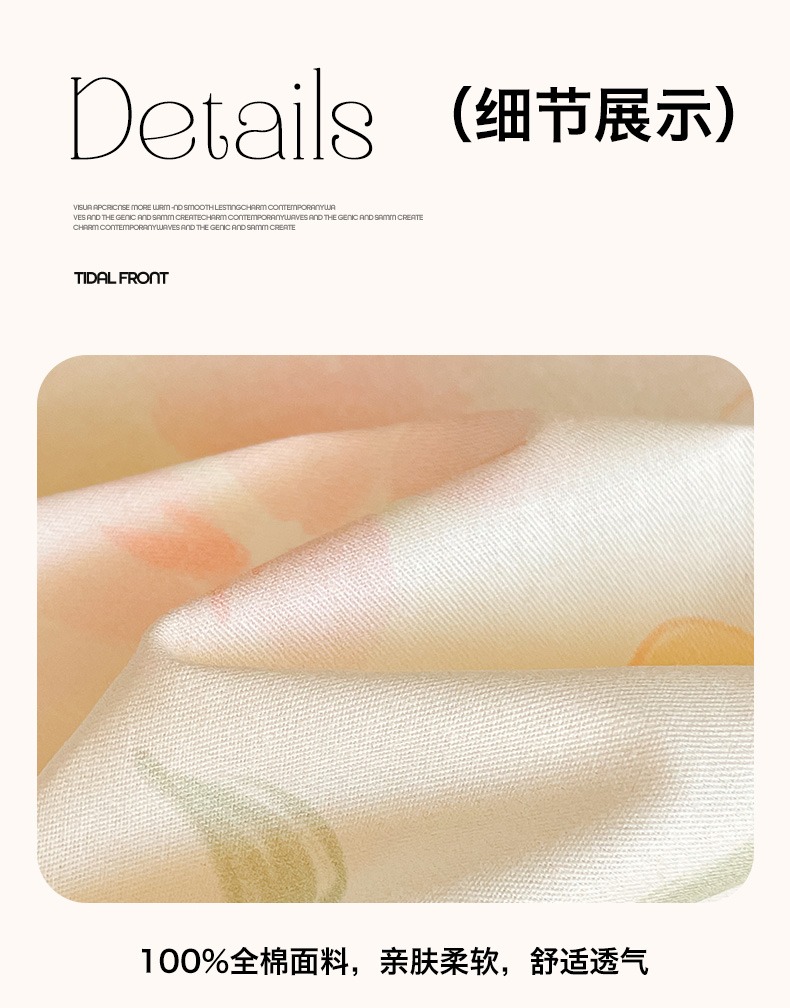 商品名称:寻米 2026新款春夏13070印花三件套单品系列-单枕套 春风里-杏色