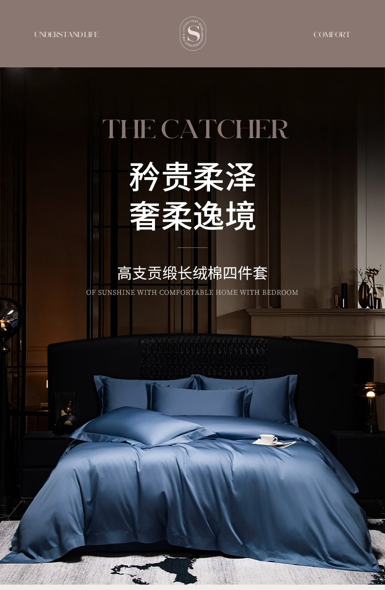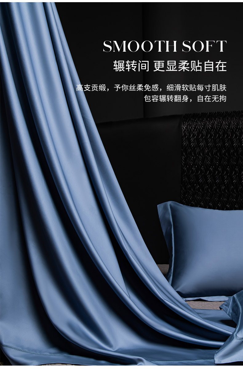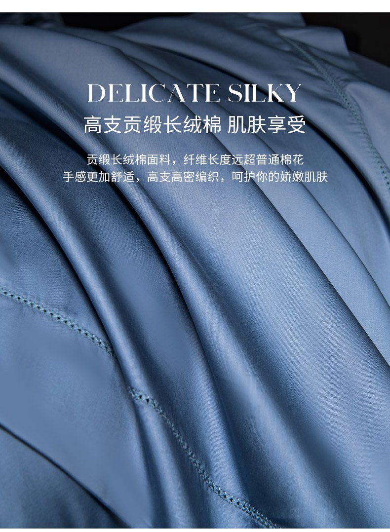 轩和家居 2026新款高支贡缎长绒棉镂空四件套 景泰蓝