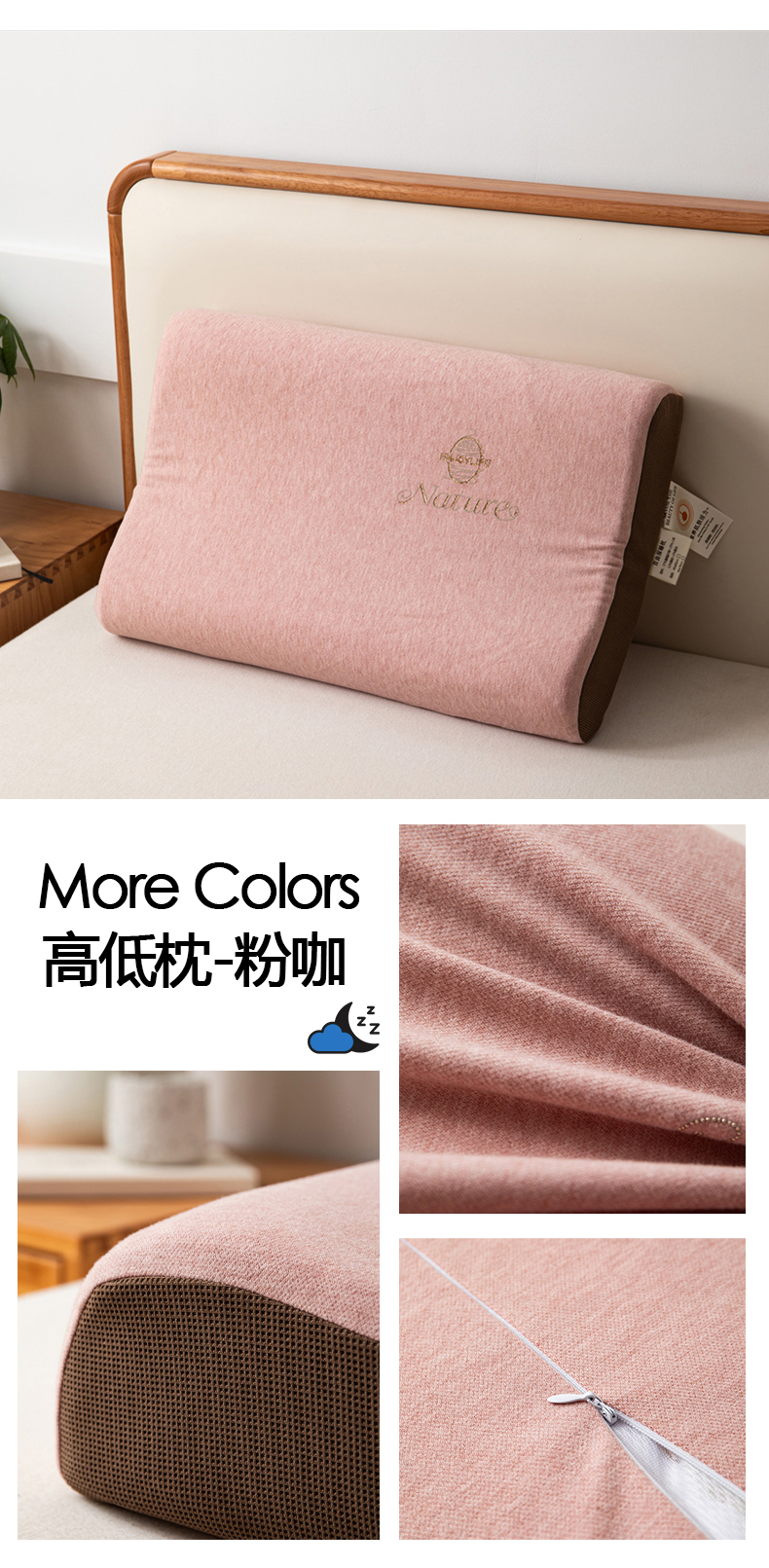 (总)一粒麦子乳胶馆 2026新款高弹亲肤加厚面包款生物基无压感枕头枕芯,粉咖色,咖粉色,组合图