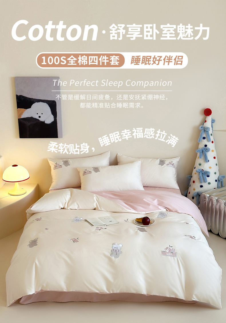 当前位置: 91家纺网 > 商品网购 > 床品套件 > 四件套 > 全棉普通四件套 > (总)爱缦 2026新款100s全棉四件套-熊小花系列(此款券后控价:小号238,标准288,大号308)