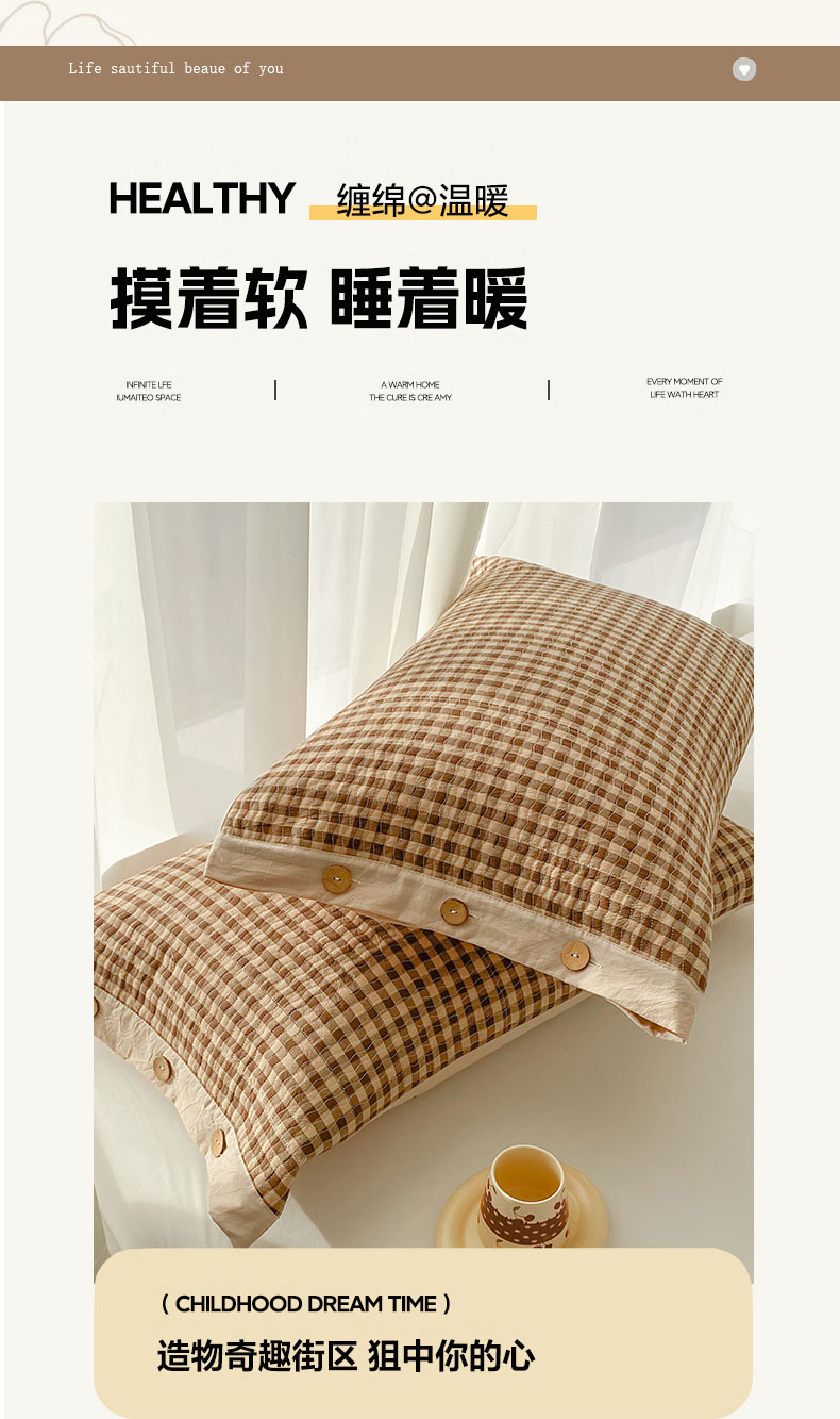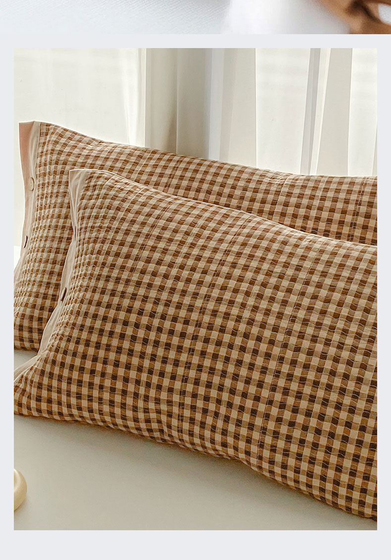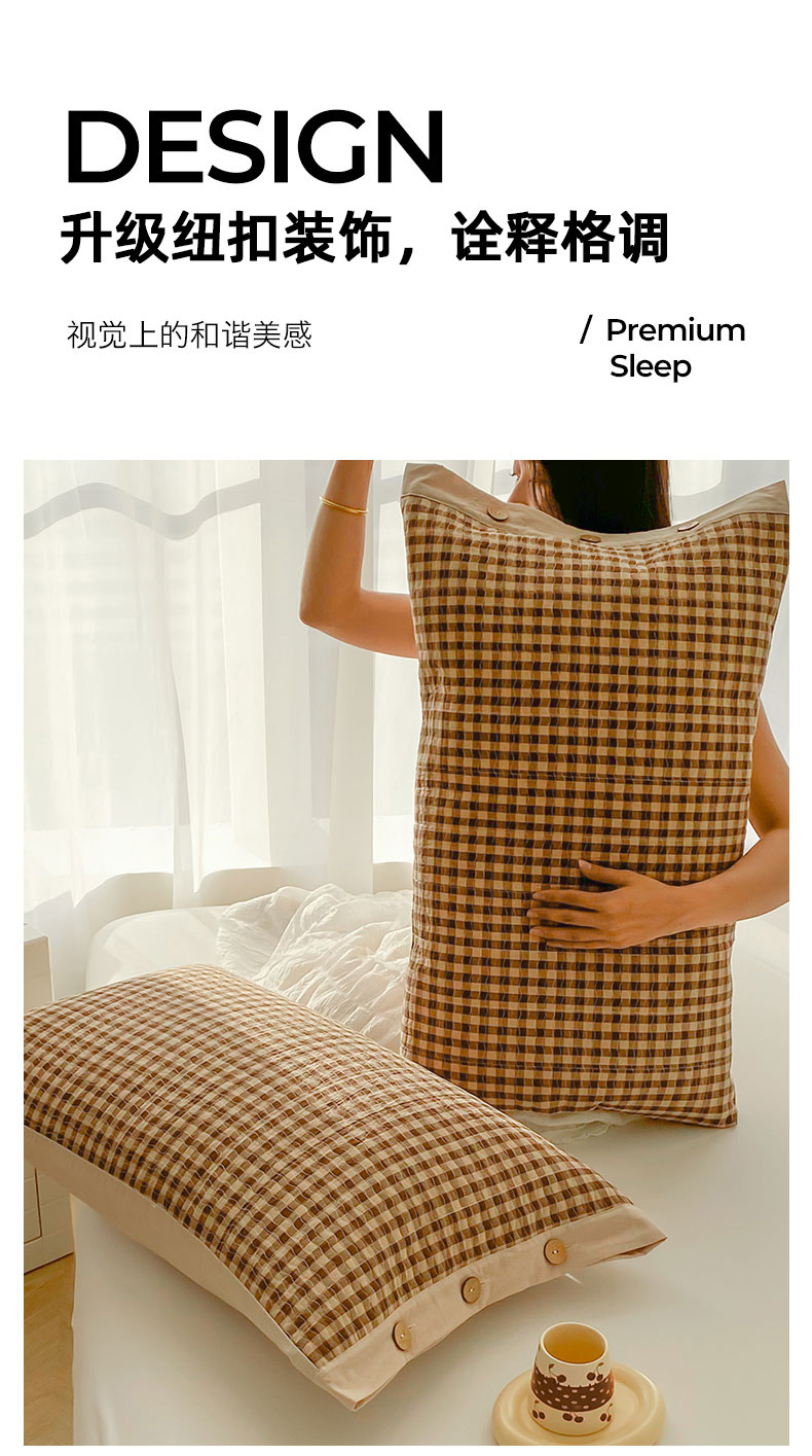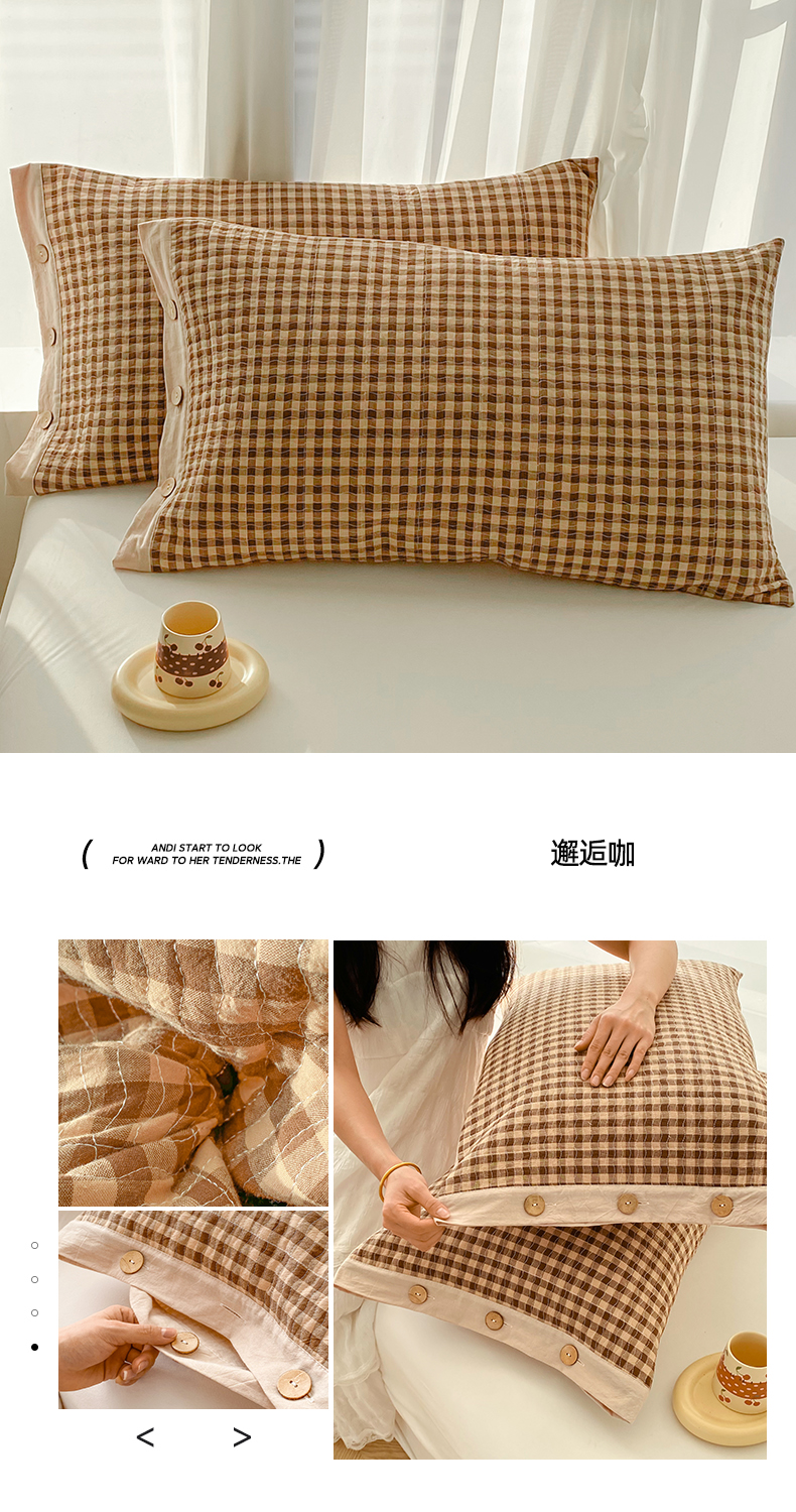 商品名称:美宜家 2026新款全棉水洗高密色织夹棉纺缝枕套高端全棉枕芯保护套 3.邂逅咖