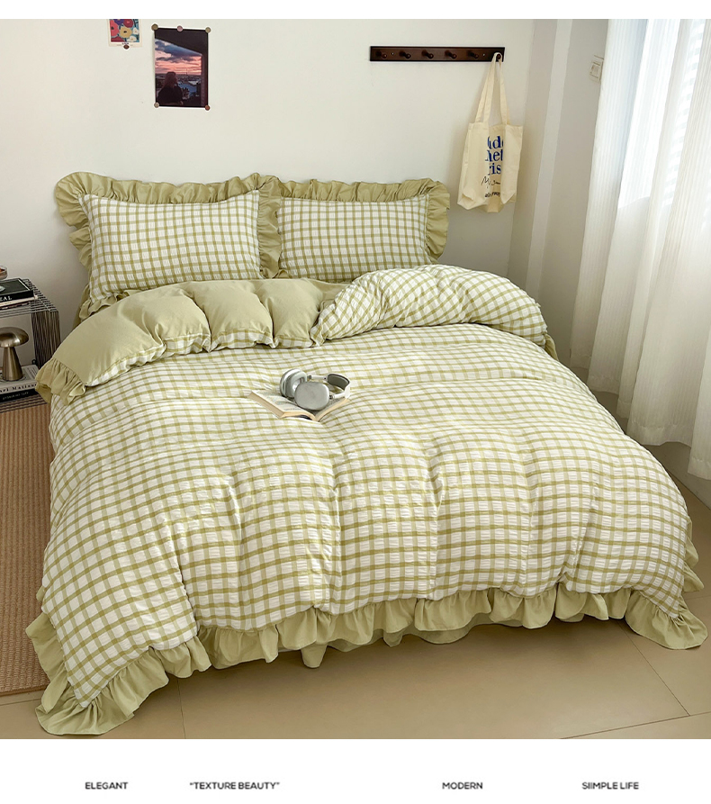 (总)乐卧家居 2026新款韩系千禧梦核复古回潮少女感格纹褶皱款荷叶边四件套,千禧-奶油蓝,千禧-复古绿,千禧-经典黑,千禧-摩卡咖,千禧-芍药粉,千禧-芋泥紫