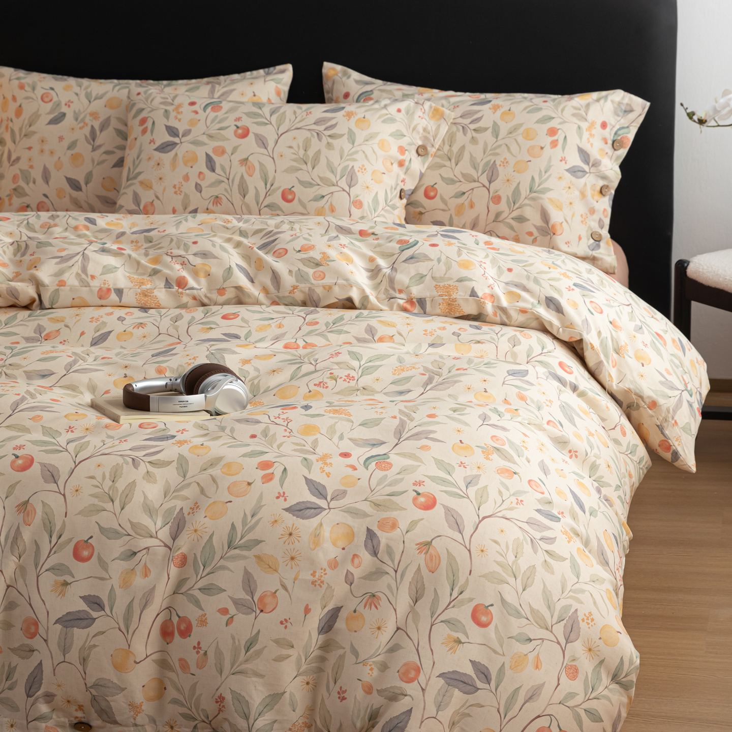 当前位置: 91家纺网 > 商品网购 > 床品套件 > 四件套 > 棉麻四件套 > 简宜家居(朝初家纺) 2026新款亲肤舒适印花棉麻四件套 蓝叶红果