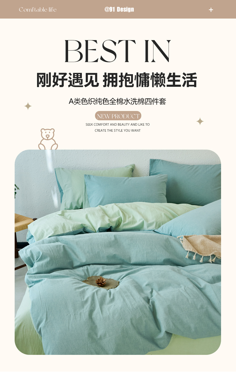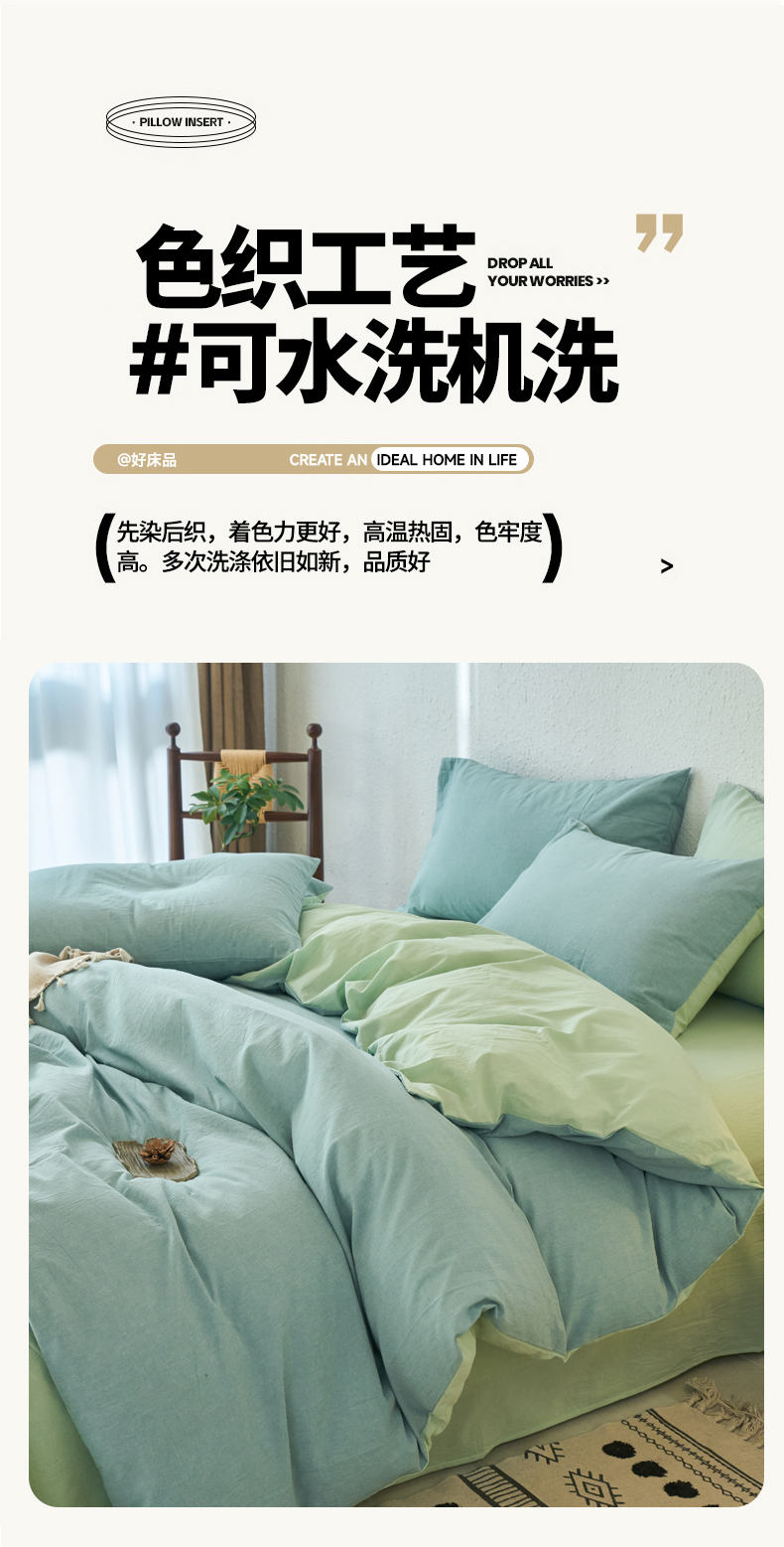 当前位置: 91家纺网 > 商品网购 > 床品套件 > 四件套 > 全棉普通四件套 > 兰紫橙家纺 2026新款A类色织纯色全棉水洗棉四件套 全棉水洗棉-天蓝+抹茶绿