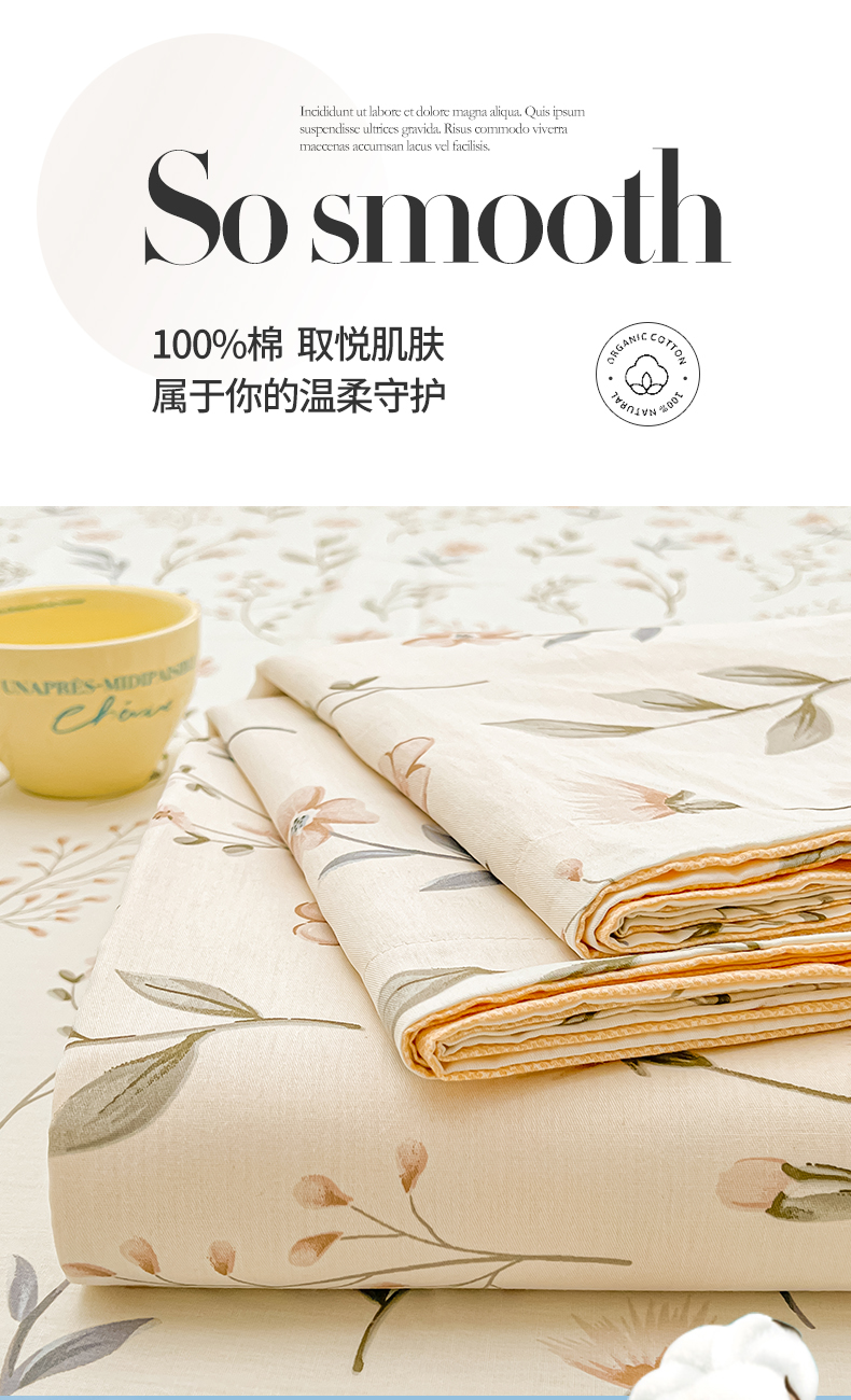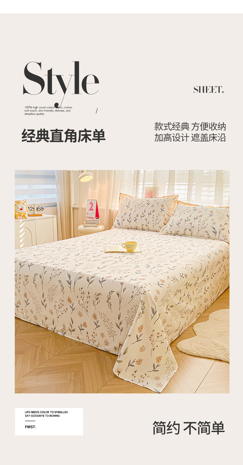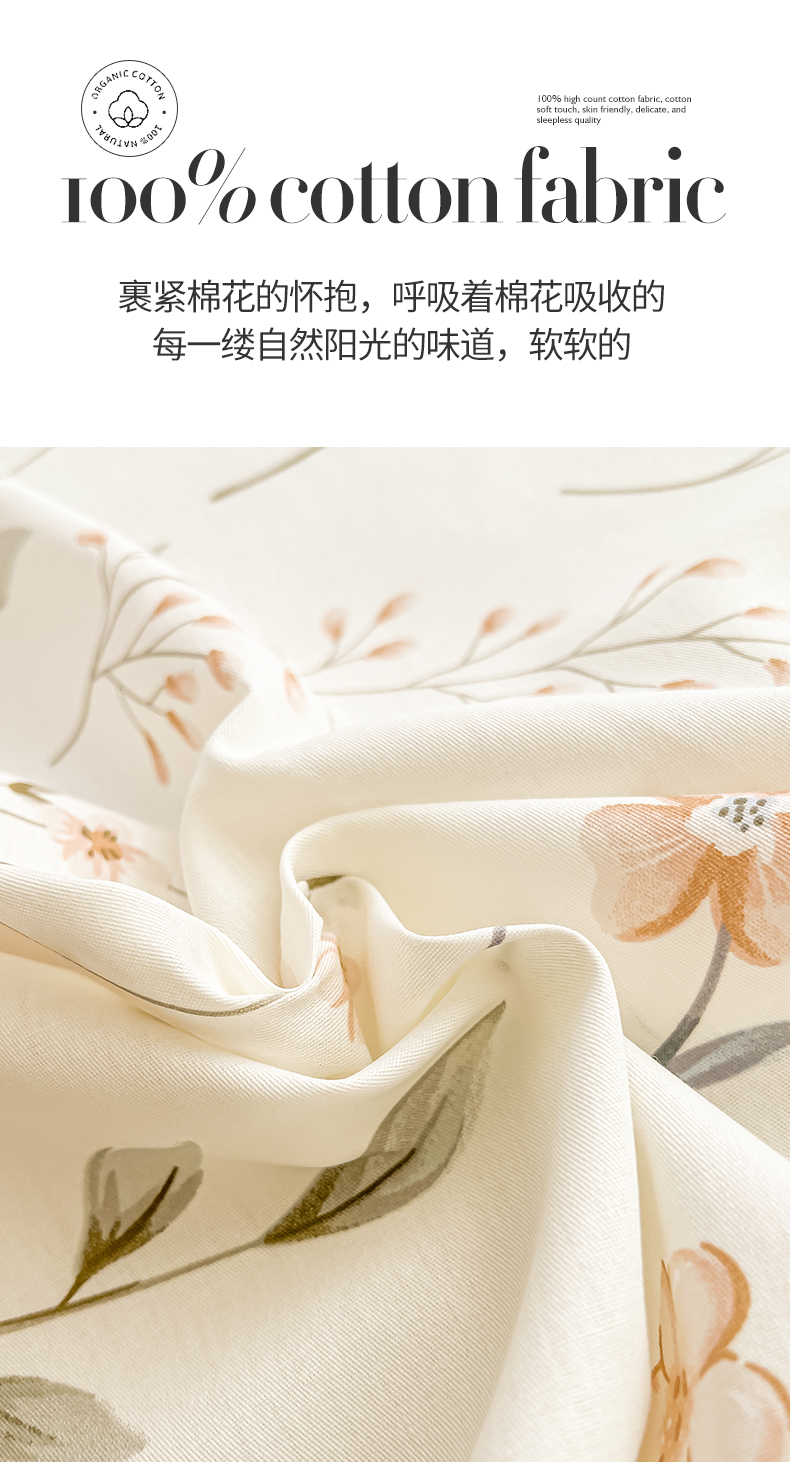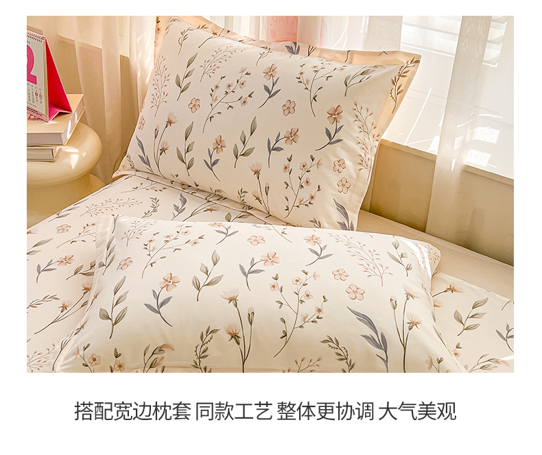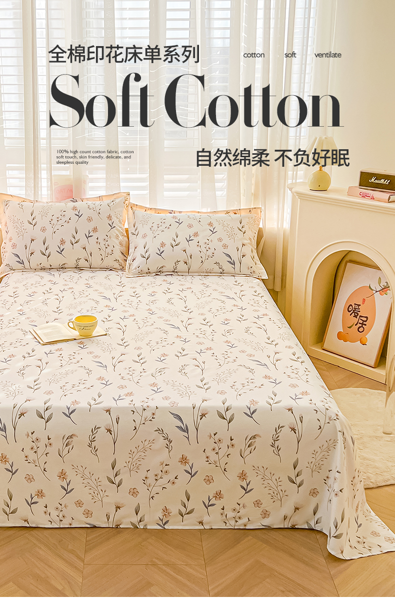 珂博家纺 2026新款12868全棉纯棉小清新印花系列单床单床笠 花枝印象