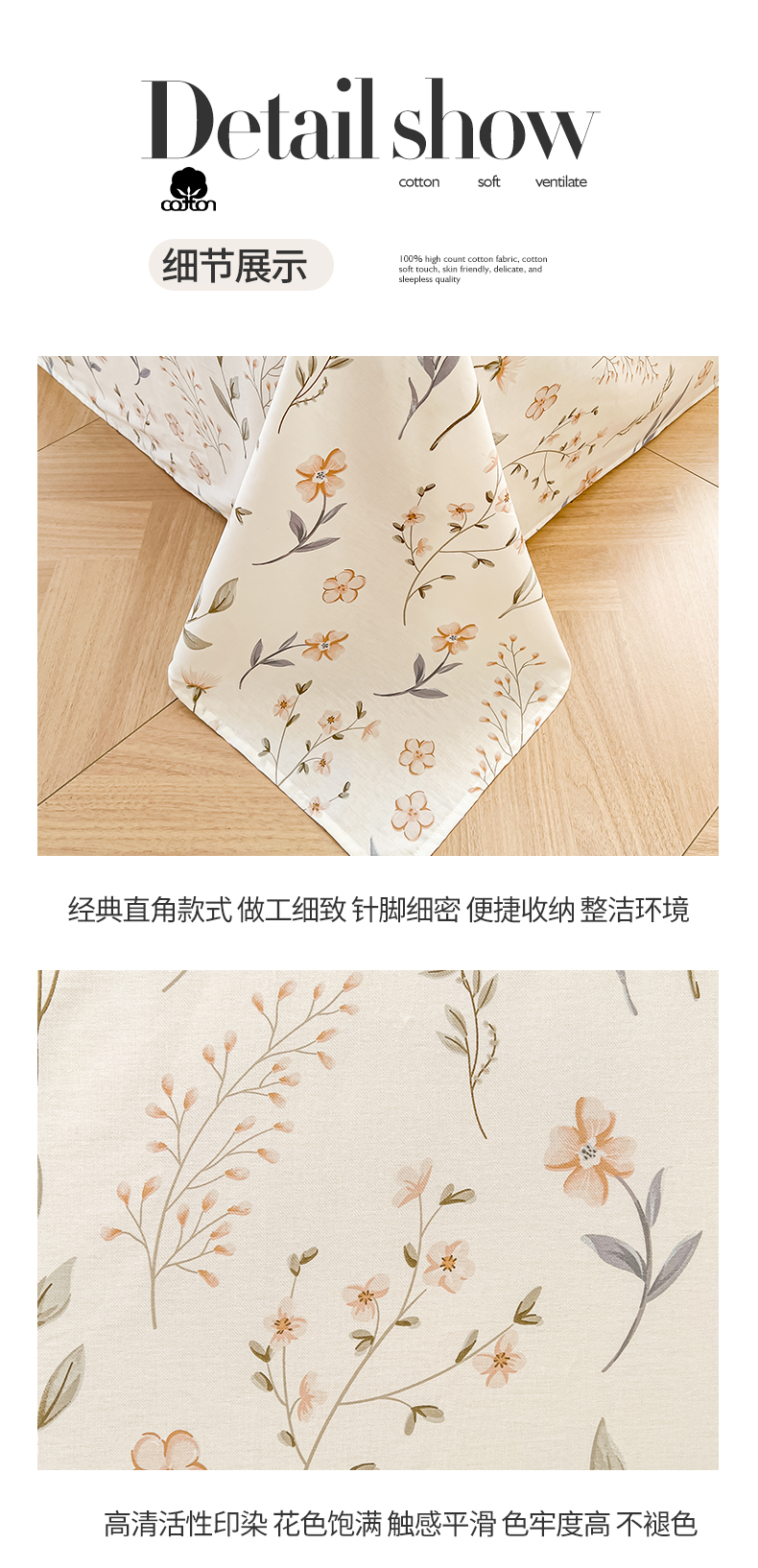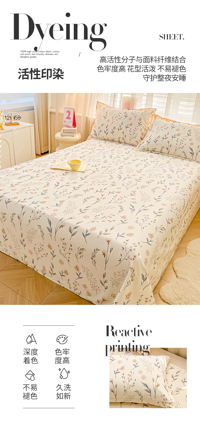 (总)珂博家纺 2026新款12868全棉纯棉小清新印花系列单床单床笠,潮流前线,梦里繁花,浪漫满屋,曼塔罗,青春律动,星辰大海,格调都市,晨曦花露,花枝印象,好柿发生