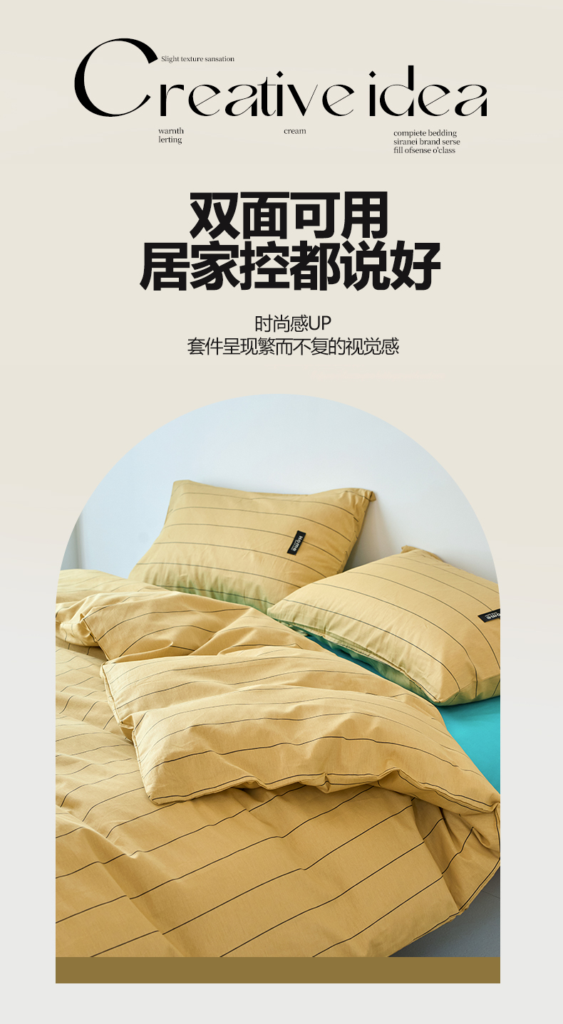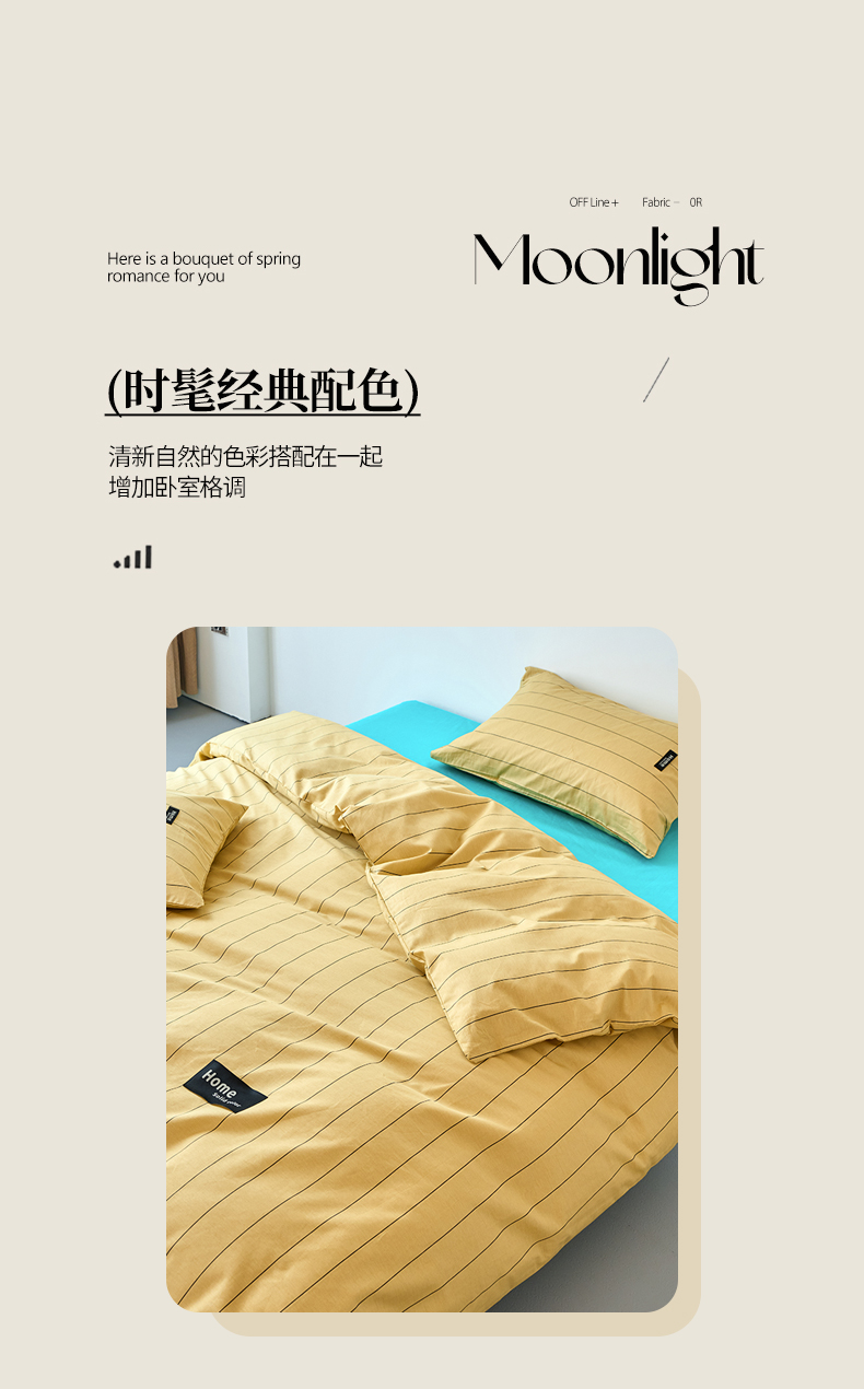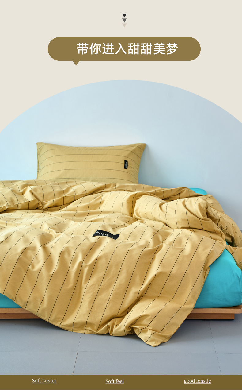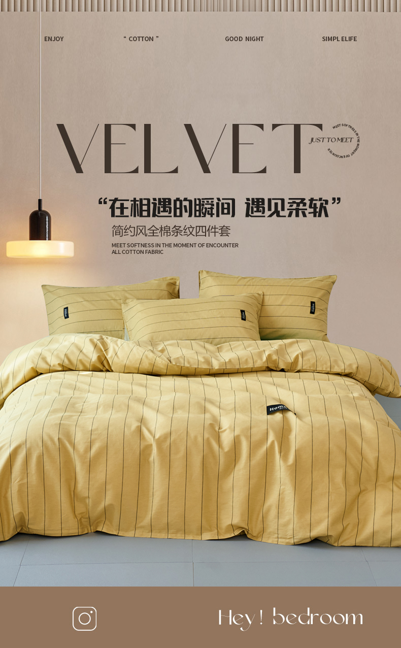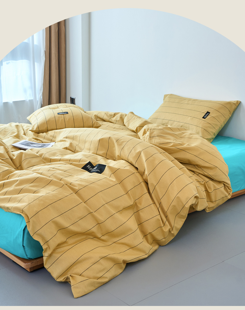 当前位置: 91家纺网 > 商品网购 > 床品套件 > 四件套 > 全棉普通四件套 > 兰紫橙家纺 2026新款简约风全棉条纹四件套 暖风