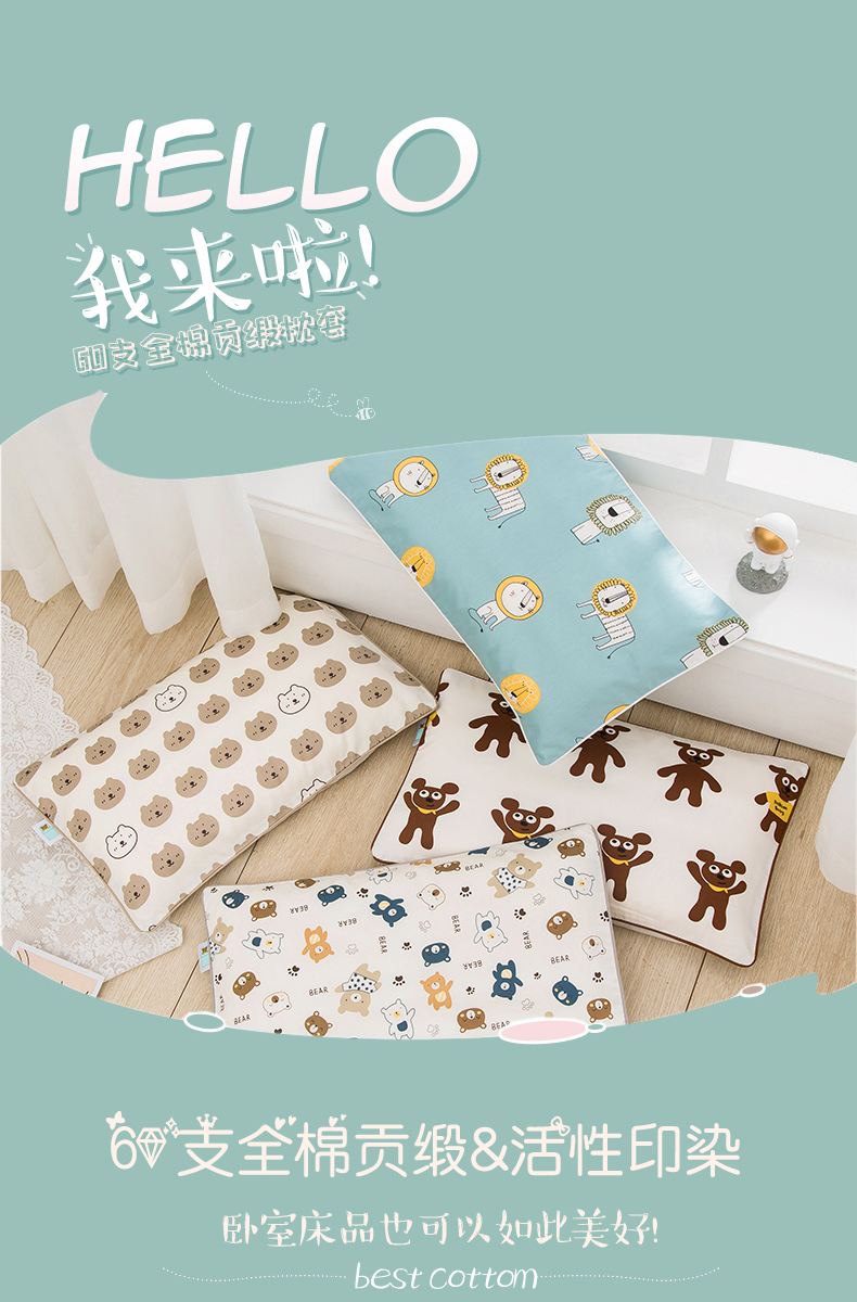 (总)良佐生活 2026年新款铂金全棉压线枕套,甜心熊,布布,调皮象,福宝,乐兔粉,乐兔蓝,太空探险,挖机小分队
