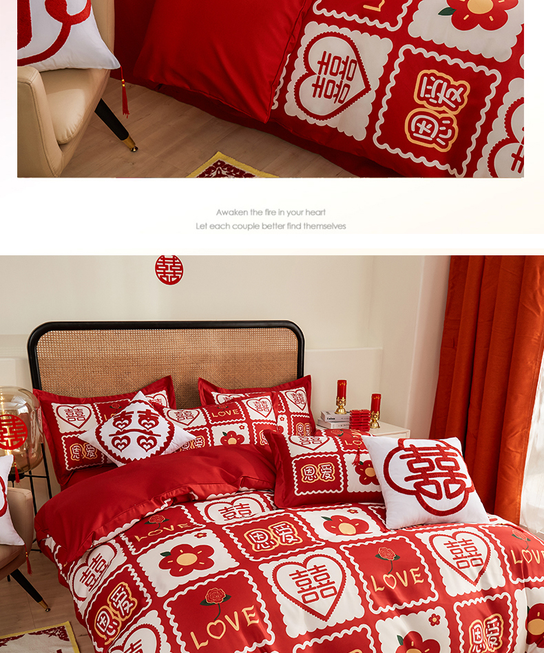当前位置: 91家纺网 > 商品网购 > 床品套件 > 四件套 > 婚庆四件套 > 啊雅家居 2026新款大红婚庆数码印花四件套床单款床笠款 花囍
