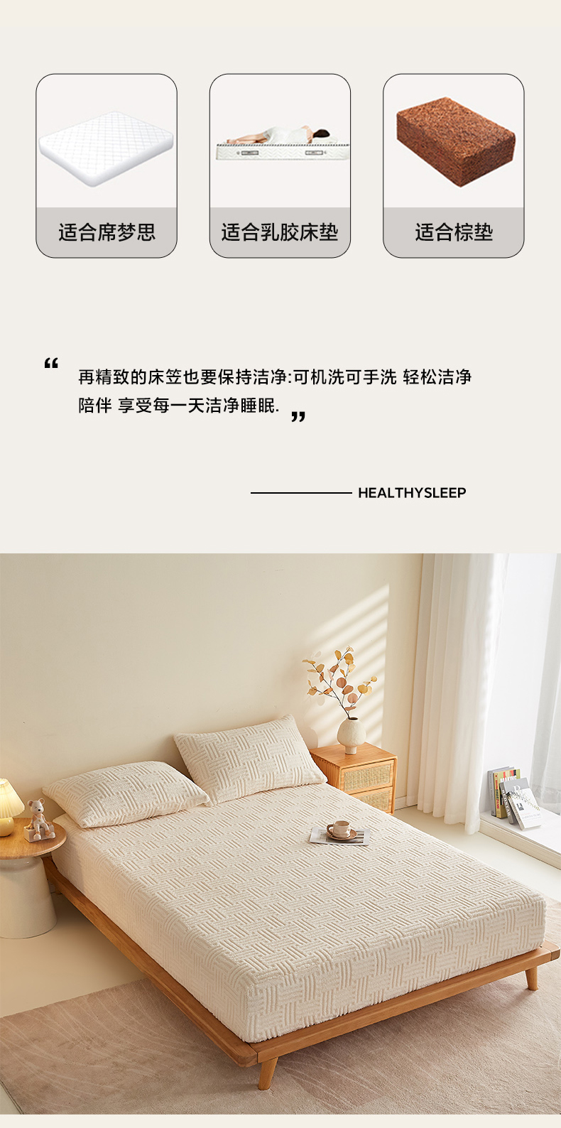 (总)蓝冰家纺 2026新款提花塔芙绒床笠,深灰色,卡其色,蓝灰色,米白色,米黄色
