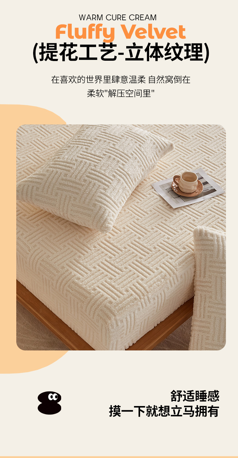 (总)蓝冰家纺 2025新款雕花牛奶绒羊羔绒床垫,宾利兰,粉桃桃,落日橙,绅士灰
