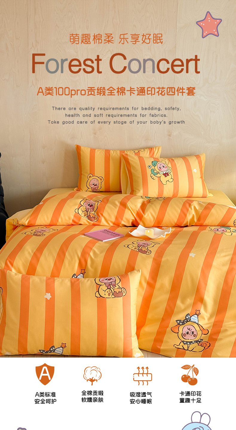 (总)卧趣家纺 2026新款纯棉四件套高级100Pro全棉贡缎卡通四件套,奥利奥-咖,奥利奥-兰,茶野,菲格拉,花仙兔,米拉,绵绵汪,慕朵,奇诺,恬悠,甜心