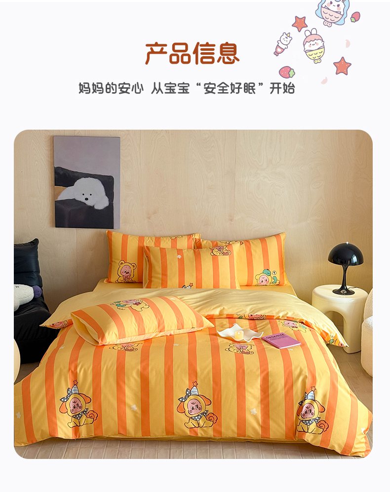 商品名称:卧趣家纺 2026新款纯棉四件套高级100Pro全棉贡缎卡通四件套 绵绵汪