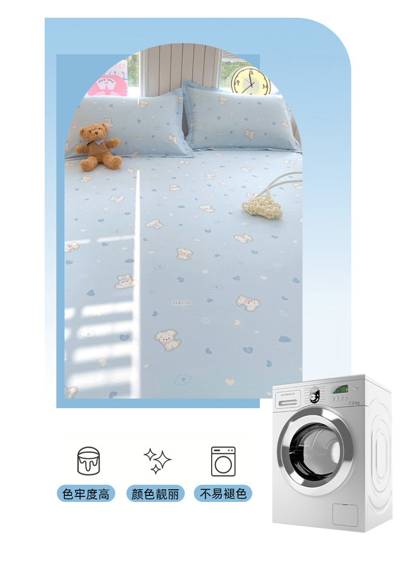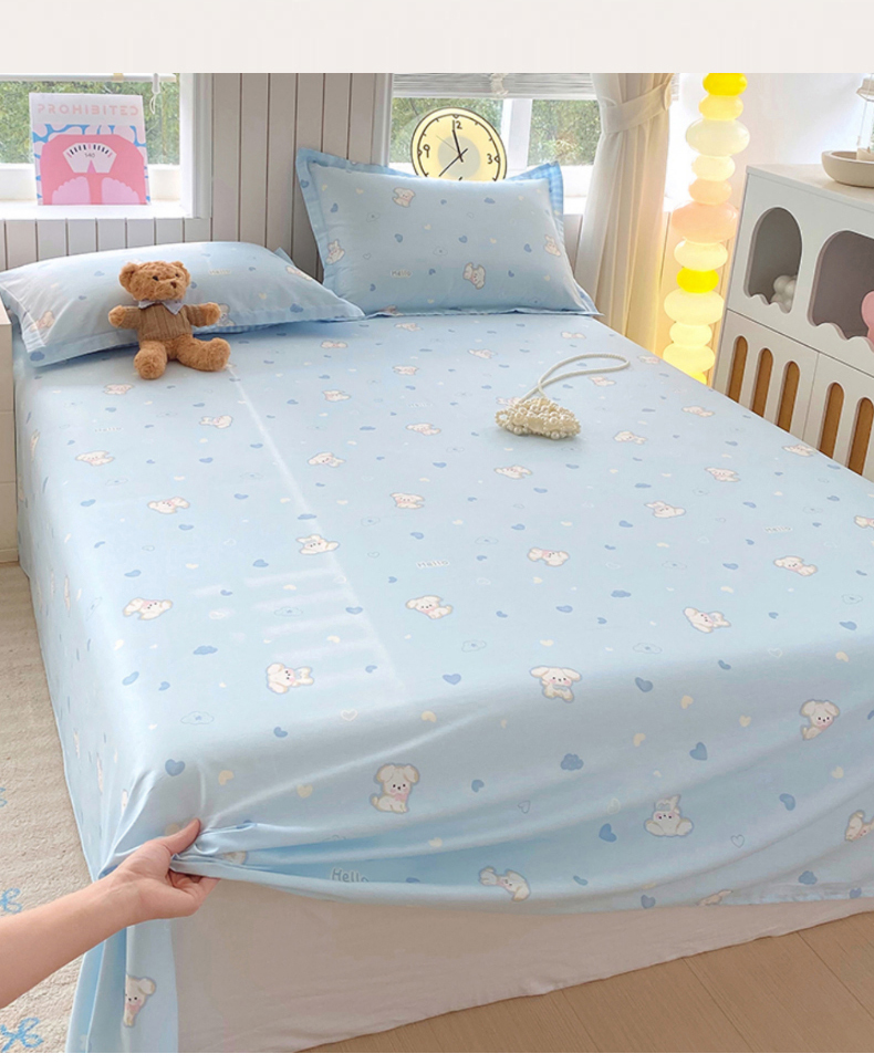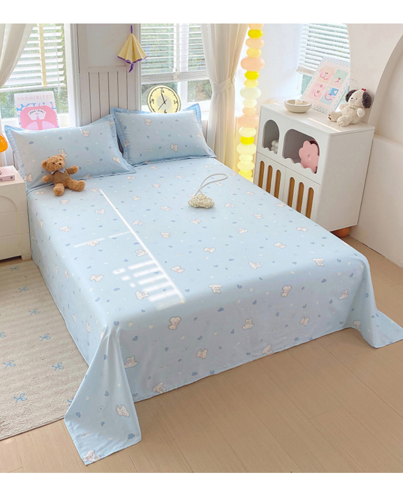 商品名称:金丝兔 2026新款纯棉印花单品床单系列 爱心蓝