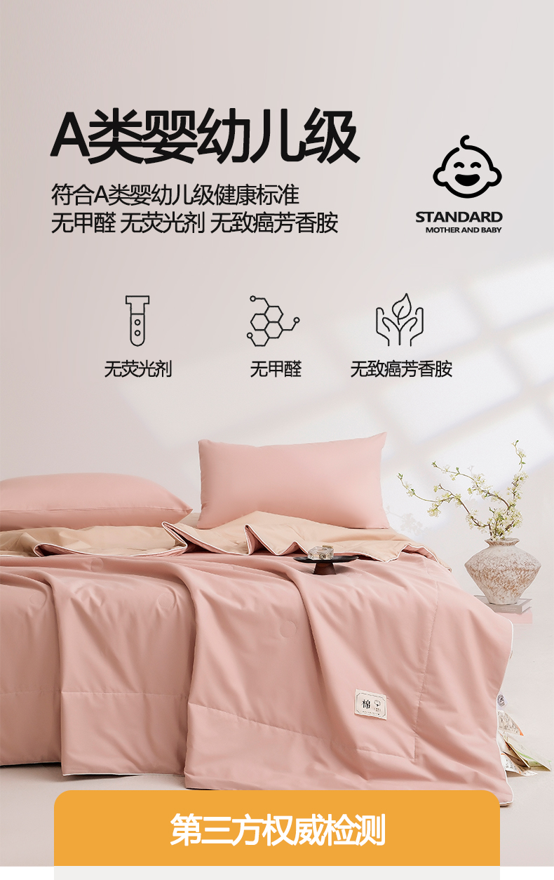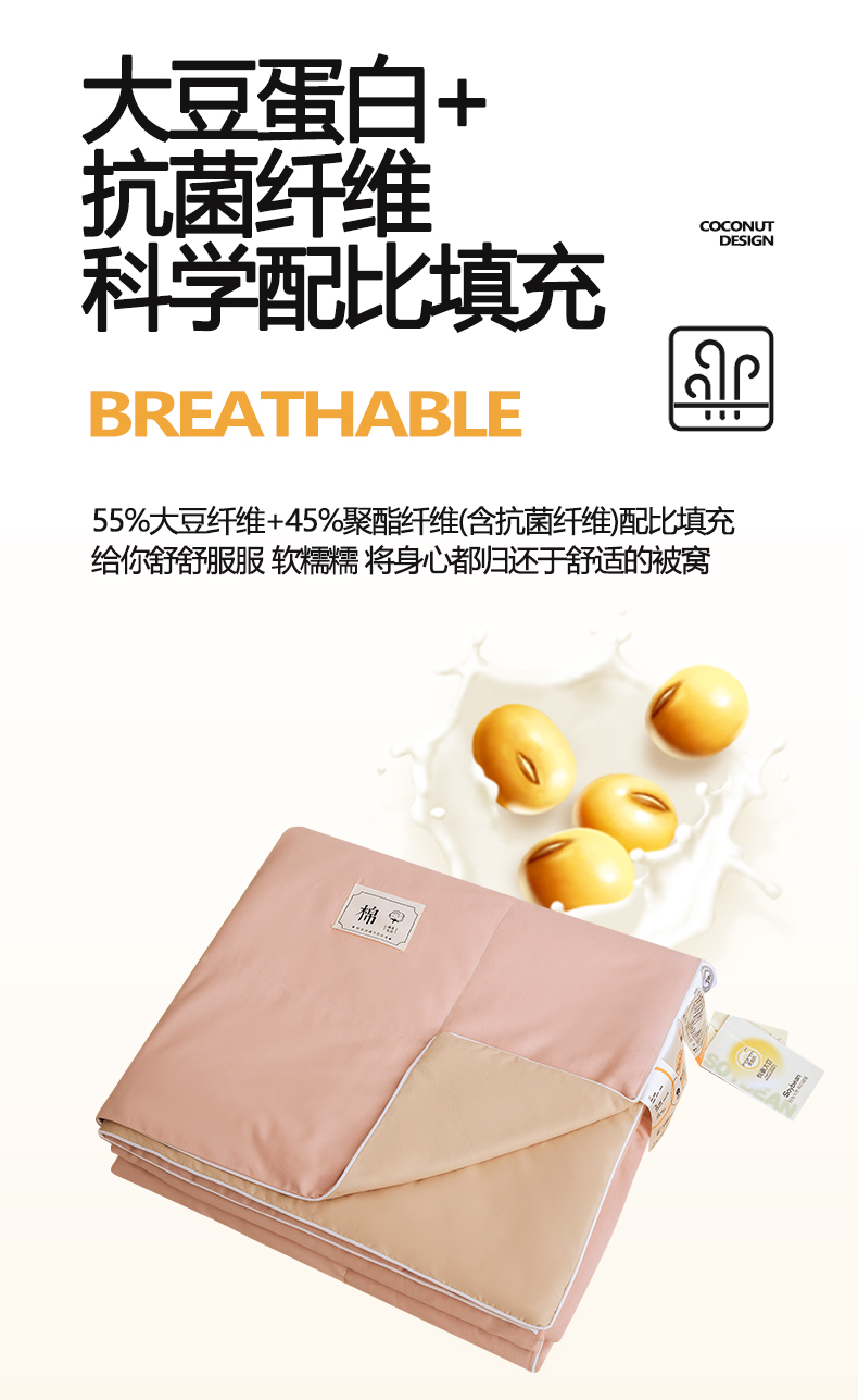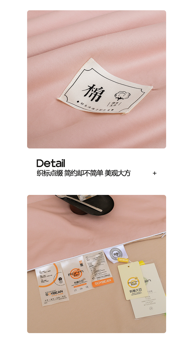 • 填充纤维种类: 大豆蛋白改性聚酯纤维