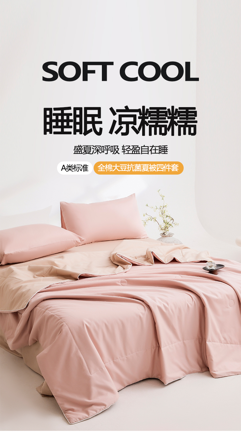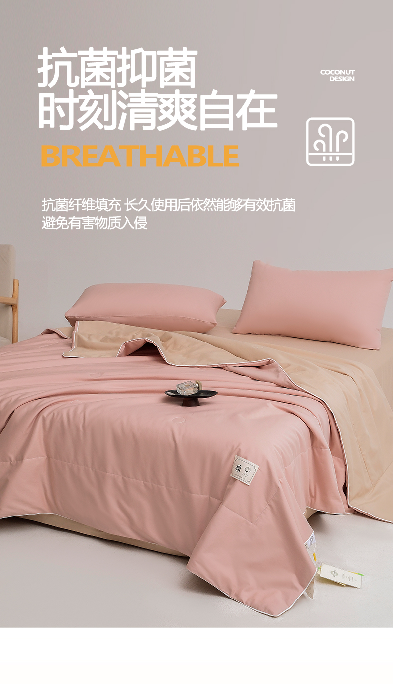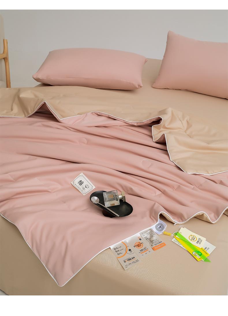 • 91家纺网 家纺一手货源 找家纺 盛凡家纺 2026新款133*72全棉A类55大豆抗菌夏被空调被夏凉被被子被芯(包检测) 玫瑰粉+奶咖