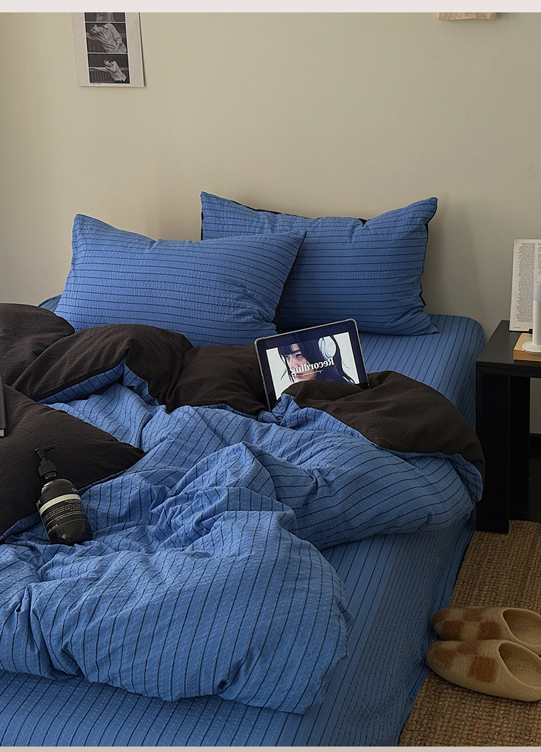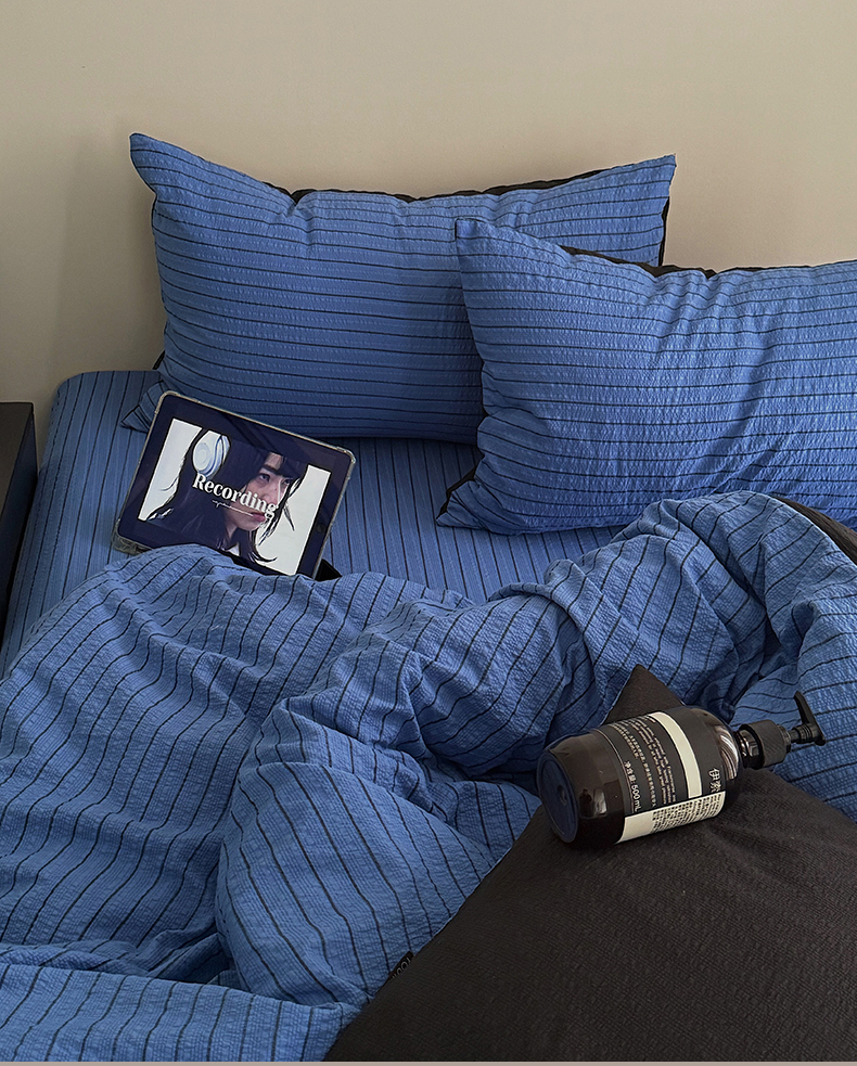 当前位置: 91家纺网 > 商品网购 > 床品套件 > 四件套 > 其它四件套 > 初念 2026春夏新款简约泡芙纱四件套 马克黑条