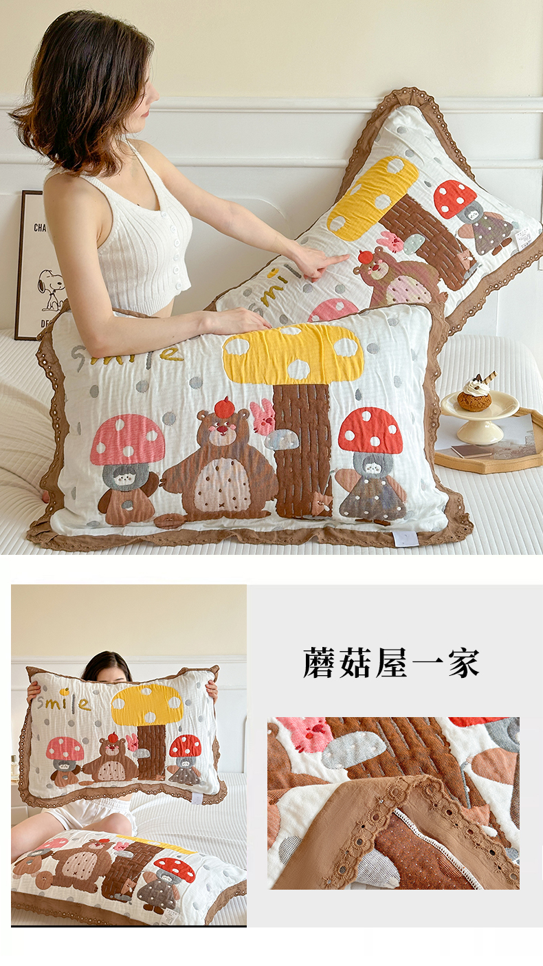 当前位置: 91家纺网 > 商品网购 > 床上用品 > 枕巾垫巾 > 朴尔家纺-毛巾被 2026新款韩版花边卡通水洗起皱纯棉六层纱布枕巾 花花的世界