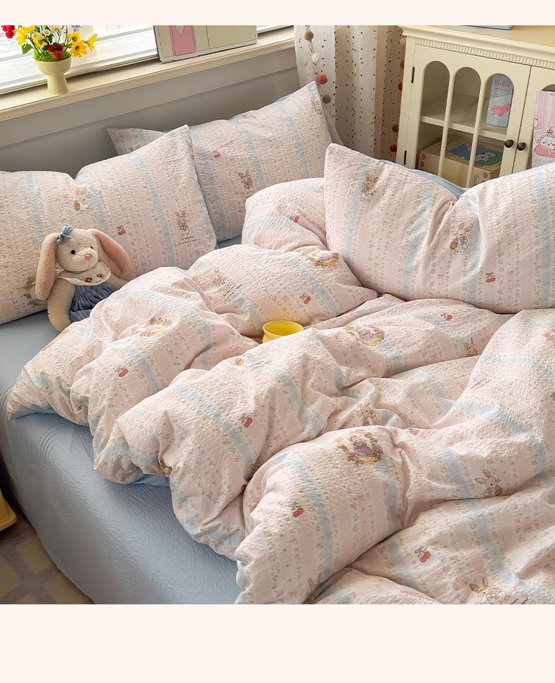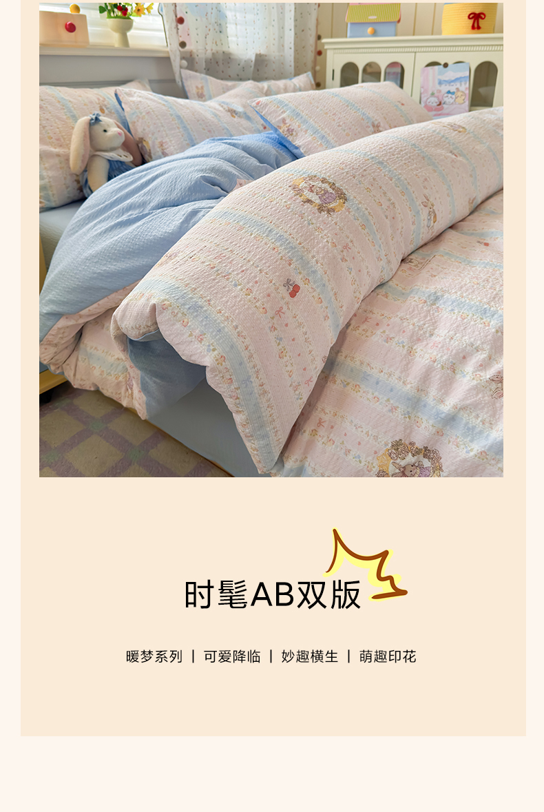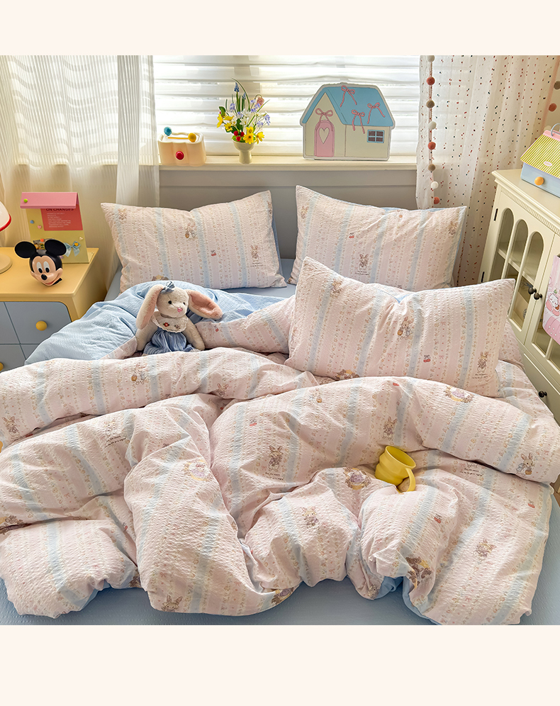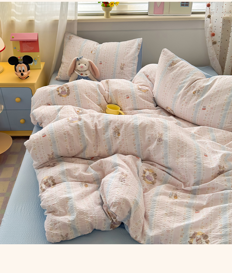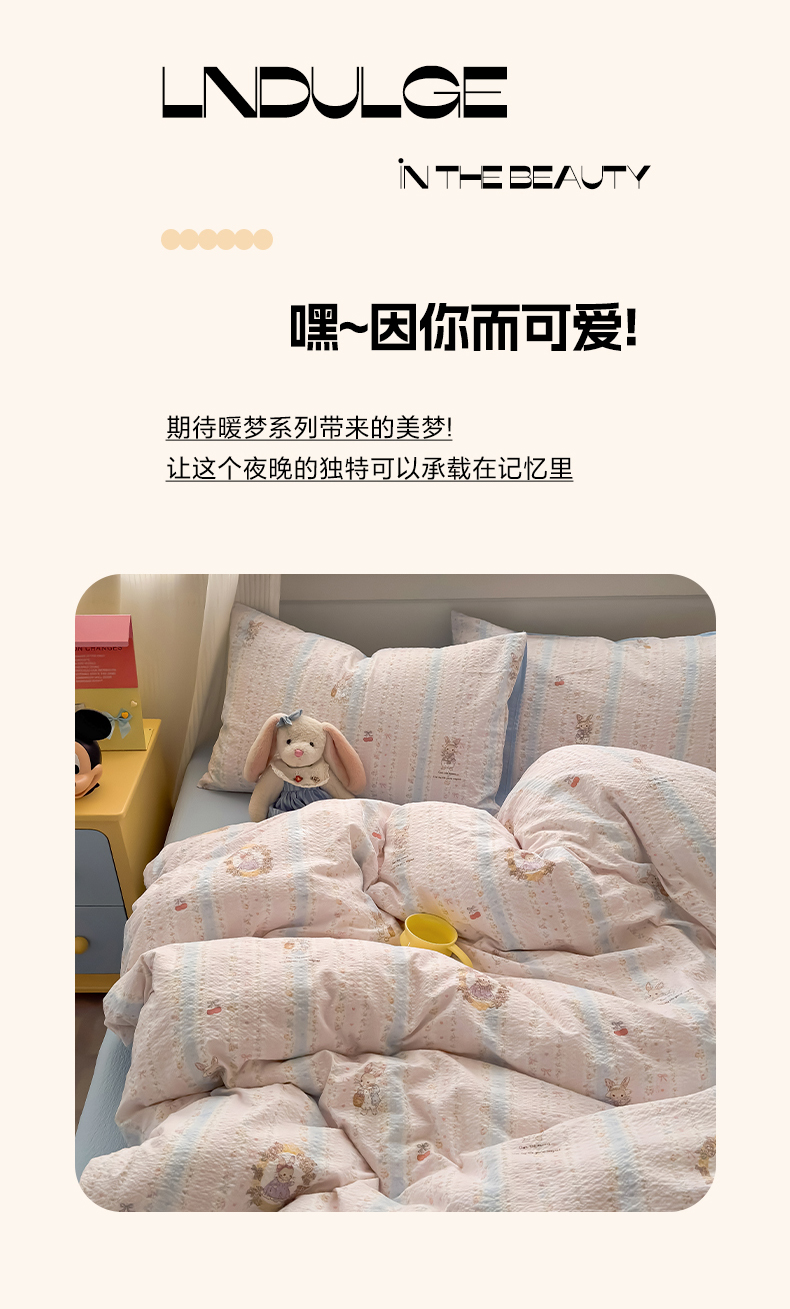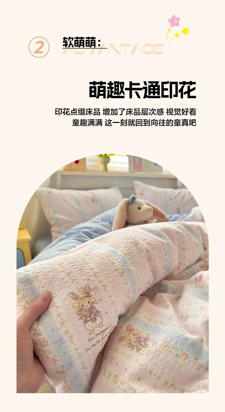 当前位置: 91家纺网 > 商品网购 > 床品套件 > 四件套 > 其它四件套 > 优承佳生活馆 2026年新款卡通小清新风格高克重超柔软糯泡芙双层纱面料三件套四件套单被套系列 芭比兔