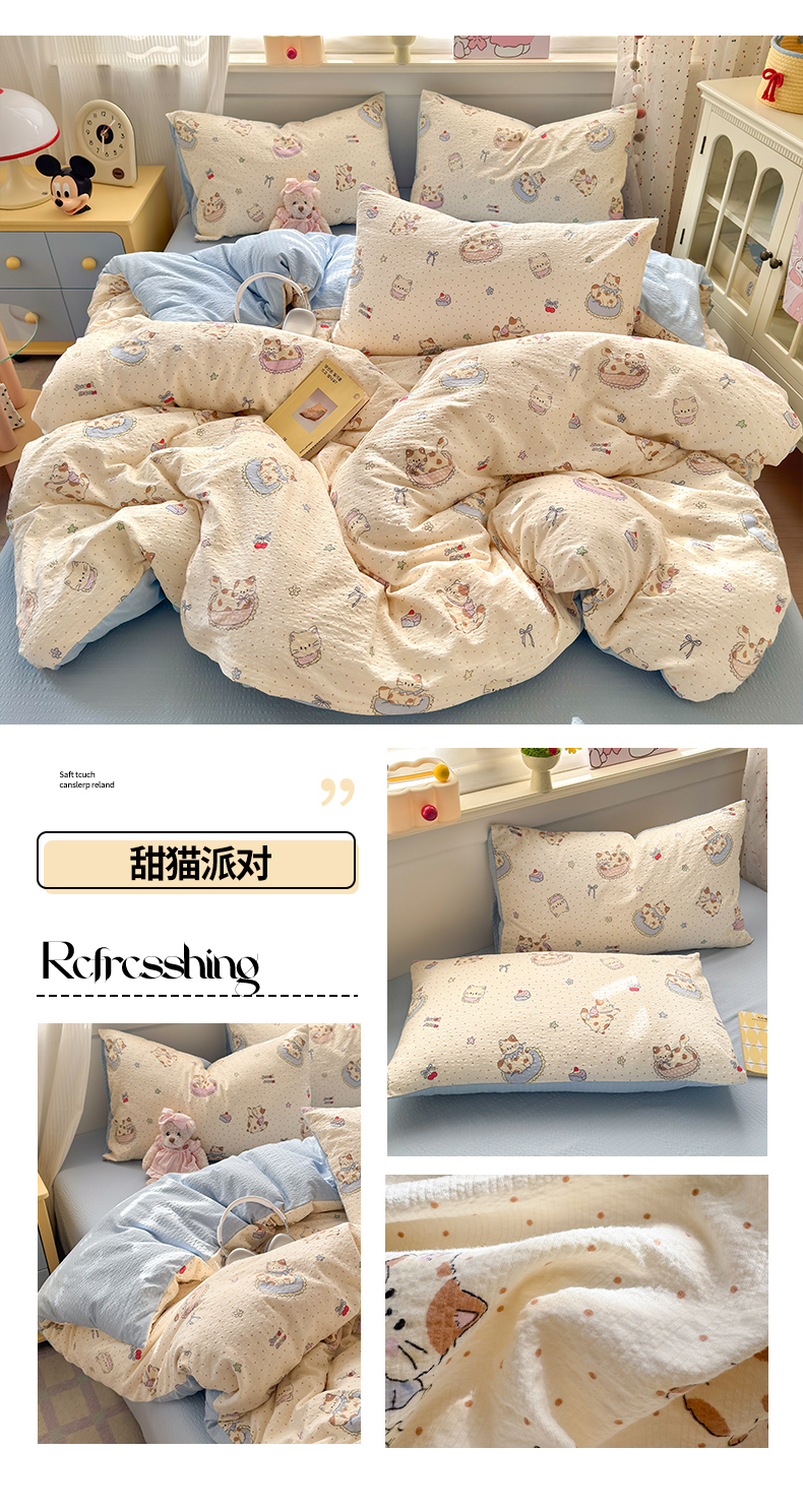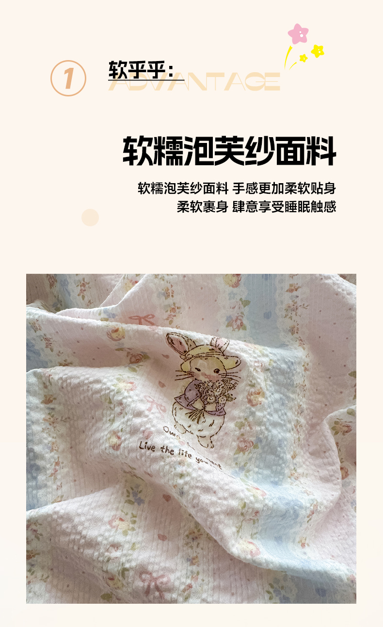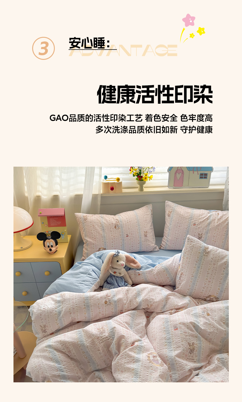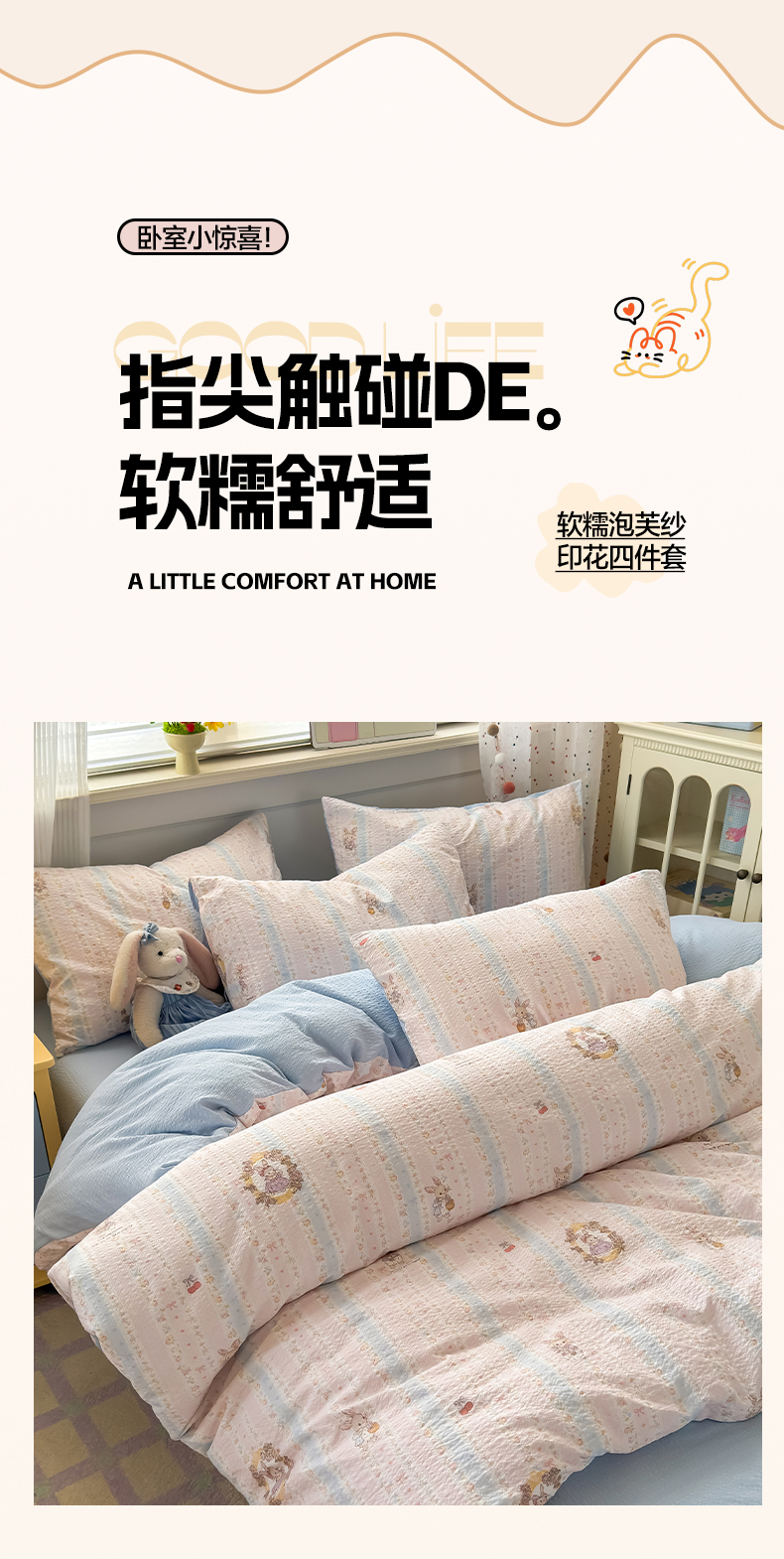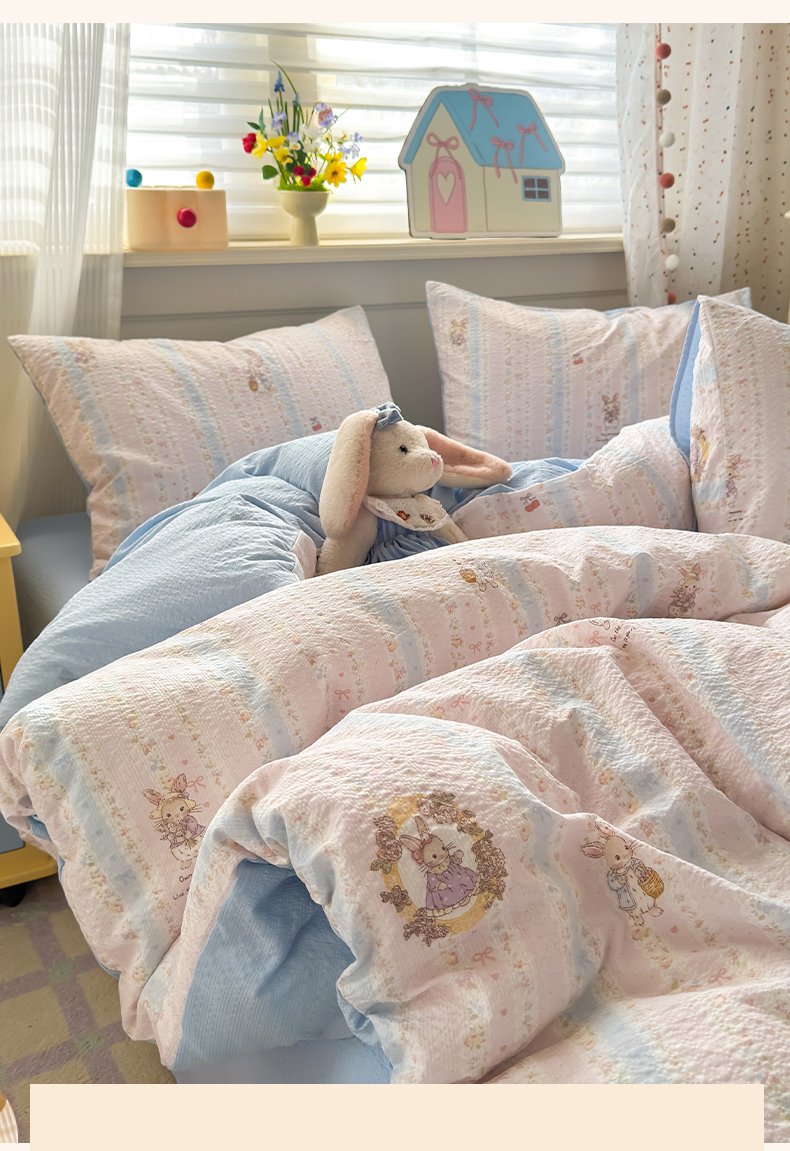 当前位置: 91家纺网 > 商品网购 > 床品套件 > 四件套 > 其它四件套 > 优承佳生活馆 2026年新款卡通小清新风格高克重超柔软糯泡芙双层纱面料三件套四件套单被套系列 芭比兔