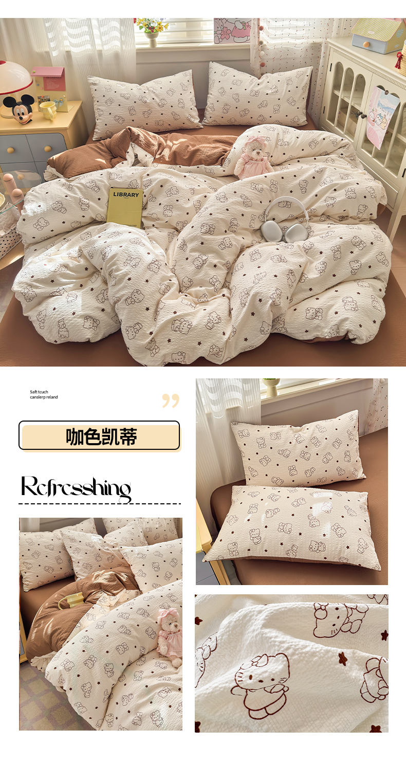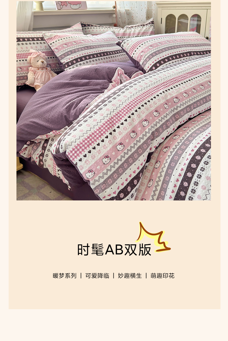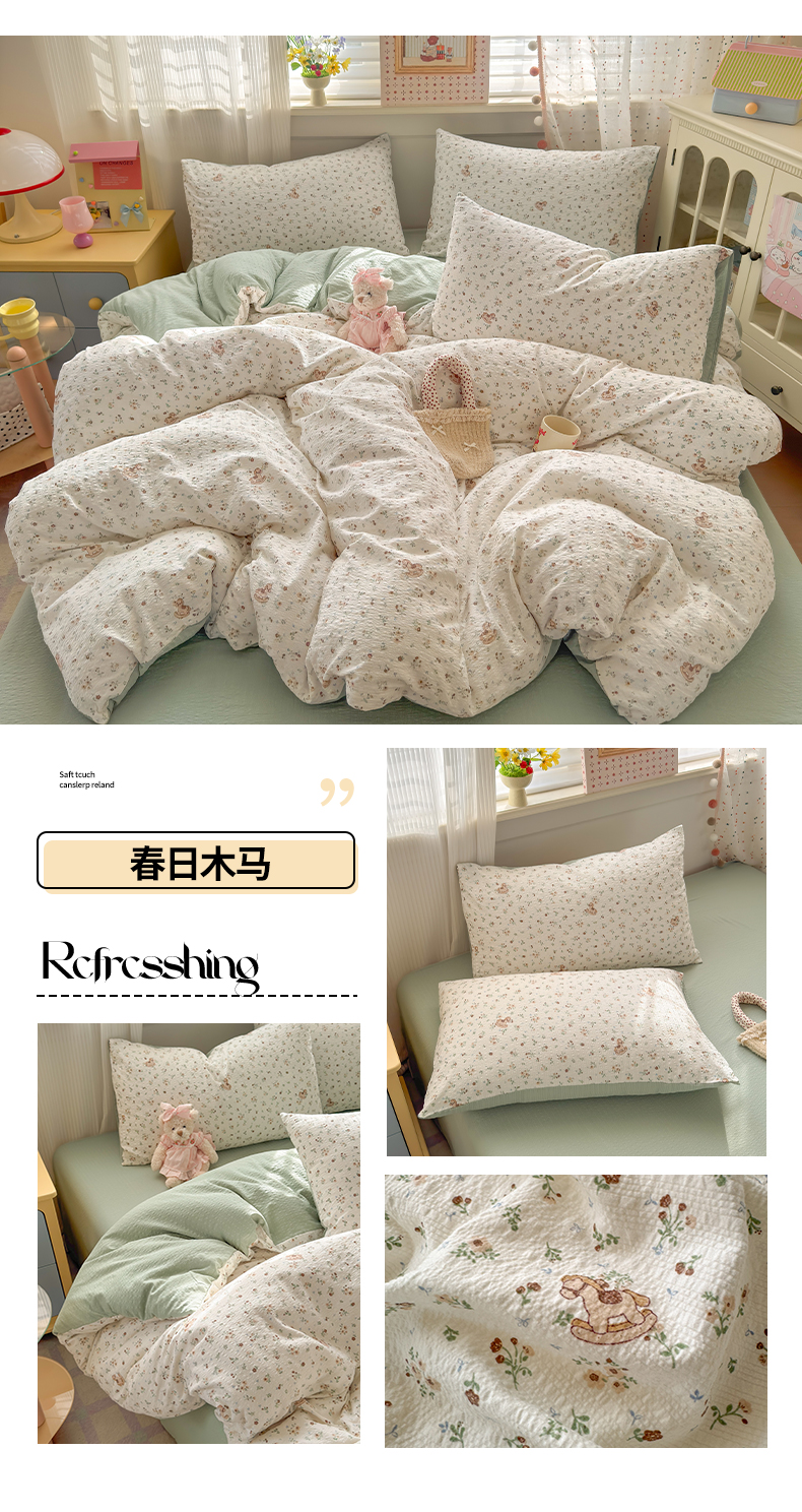 当前位置: 91家纺网 > 商品网购 > 床品套件 > 四件套 > 其它四件套 > 优承佳生活馆 2026年新款卡通小清新风格高克重超柔软糯泡芙双层纱面料三件套四件套单被套系列 甜心