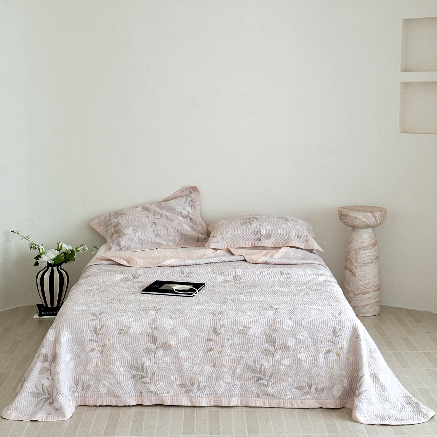 (总)床盖工厂店 2026新款双面水洗全棉填充棉花床盖三件套-朵拉系列,朵拉-粉,朵拉-灰,朵拉-咖,朵拉-绿,组合图
