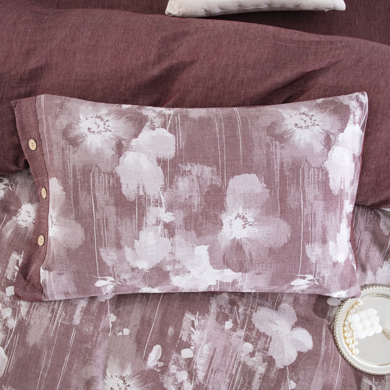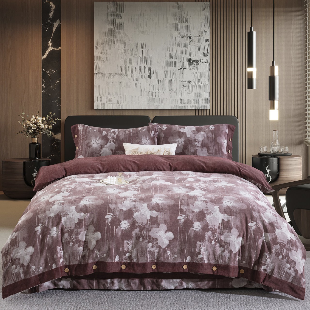 (总)仰望棉麻双层纱供应链 2026新款全棉色织提花双层纱四件套-花茉羽,花茉羽-紫