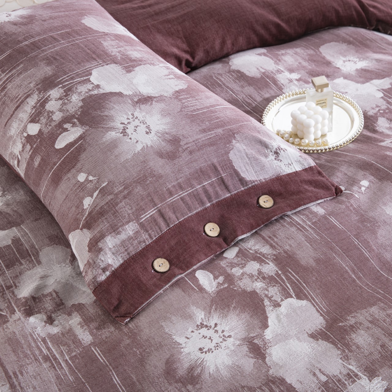 商品名称:仰望棉麻双层纱供应链 2026新款全棉色织提花纽扣款四件套-花都 花都-豆沙
