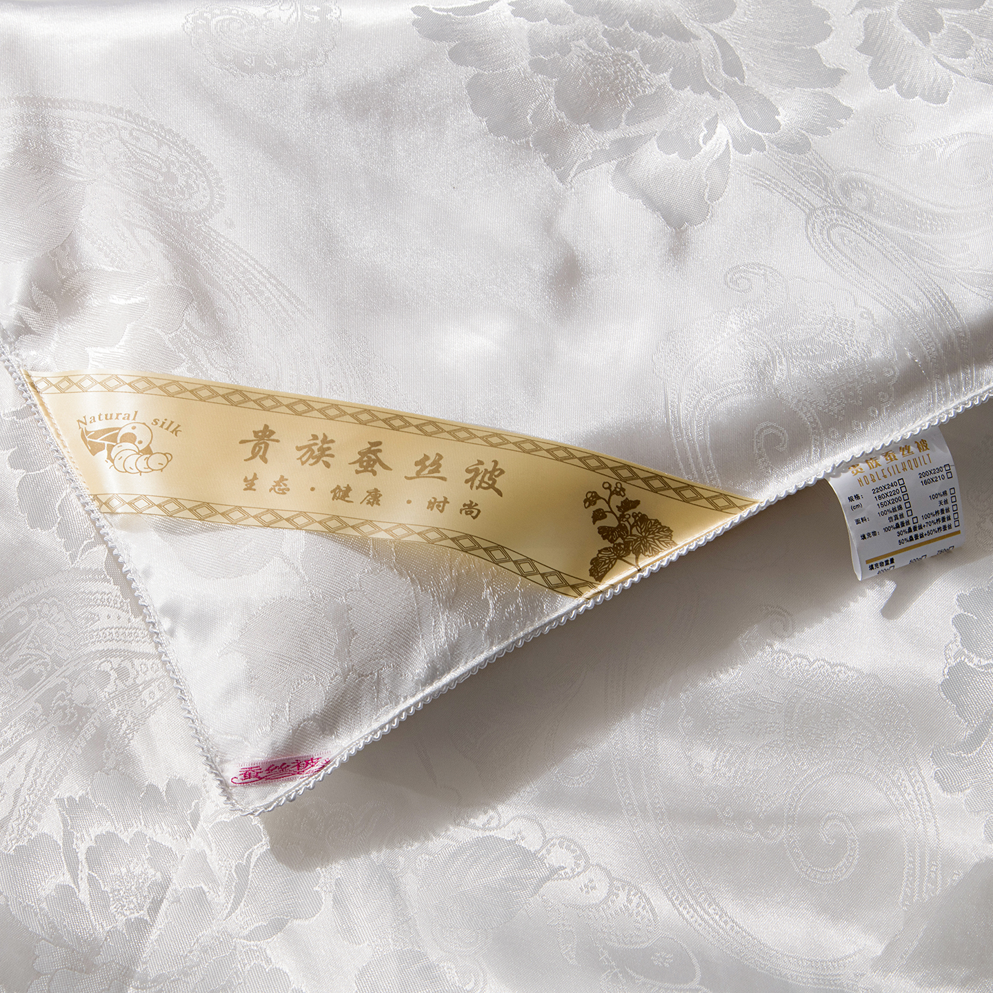 商品名称:鑫田家纺 2026新款100%蚕丝被柞蚕丝夏凉被牡丹花大提花春秋被冬被子母被礼品被夏被桑蚕丝被 牡丹花-白色