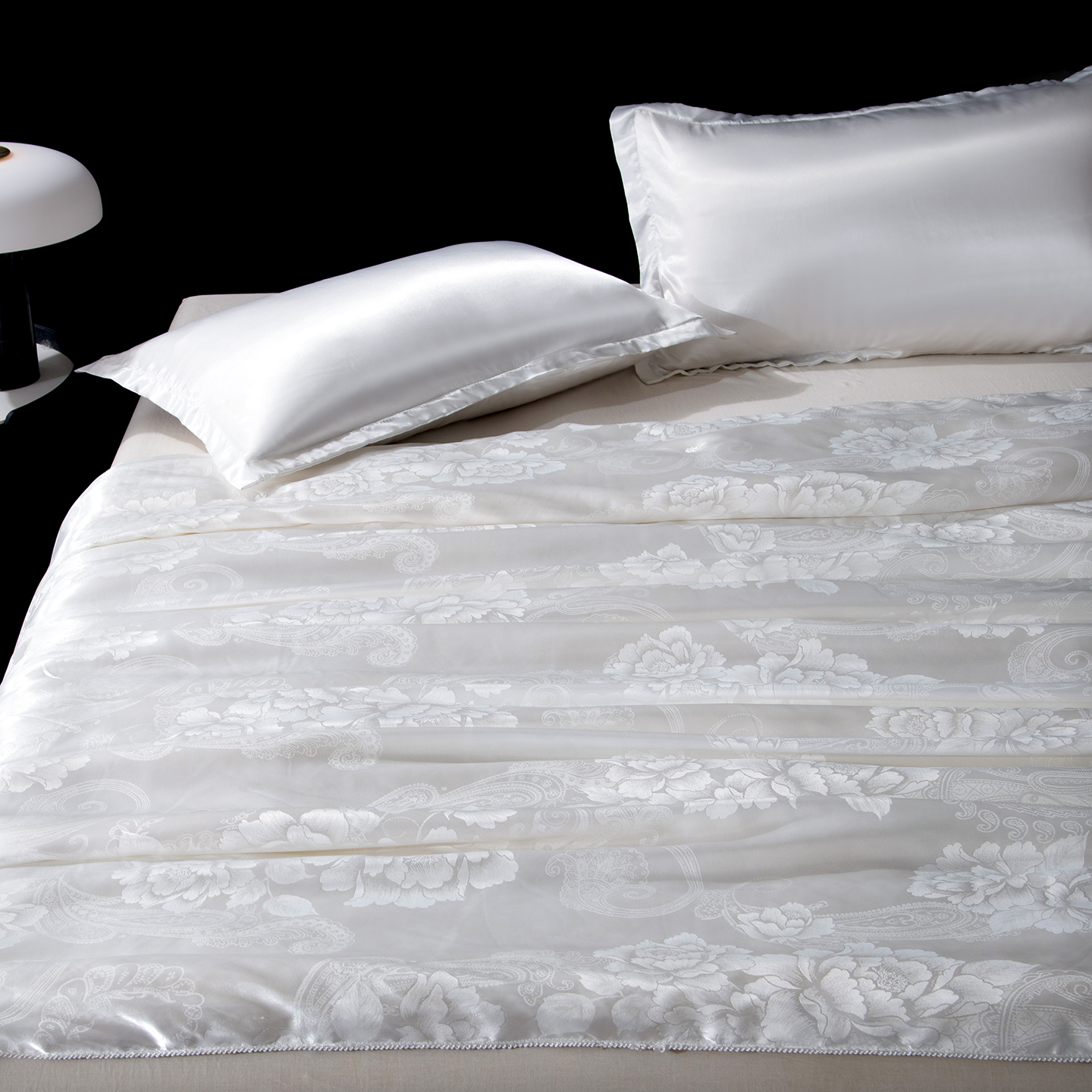 被子 > 蚕丝被 > 鑫田家纺 2026新款100%蚕丝被柞蚕丝夏凉被牡丹花大提花春秋被冬被子母被礼品被夏被桑蚕丝被 牡丹花-白色