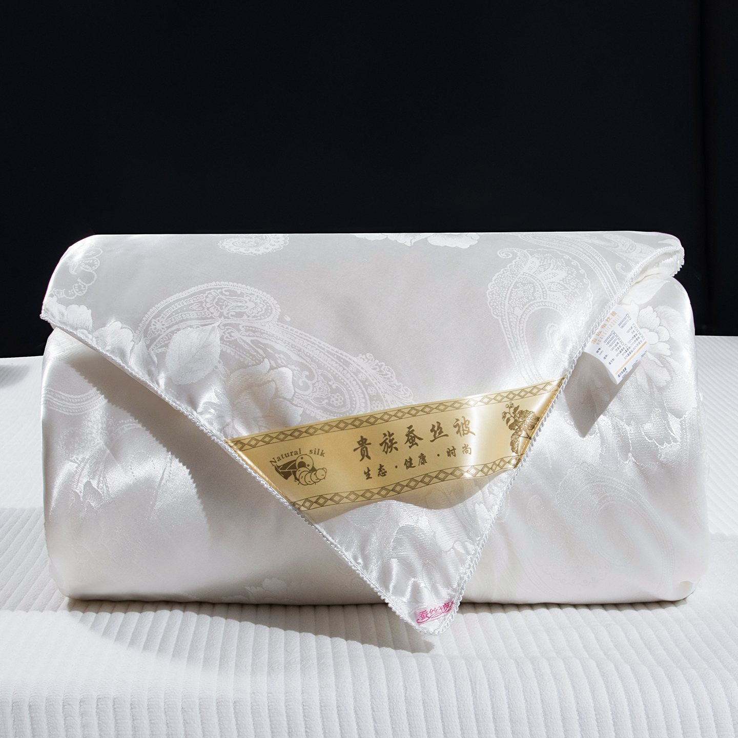 (总)鑫田家纺 2026新款大提花100%蚕丝被柞蚕丝夏凉被春秋被冬被子母被礼品被夏被桑蚕丝被,皇冠-白色,皇冠-美玉色