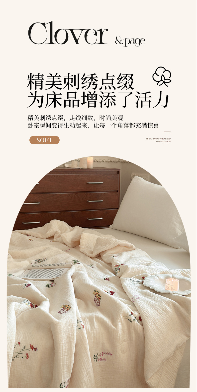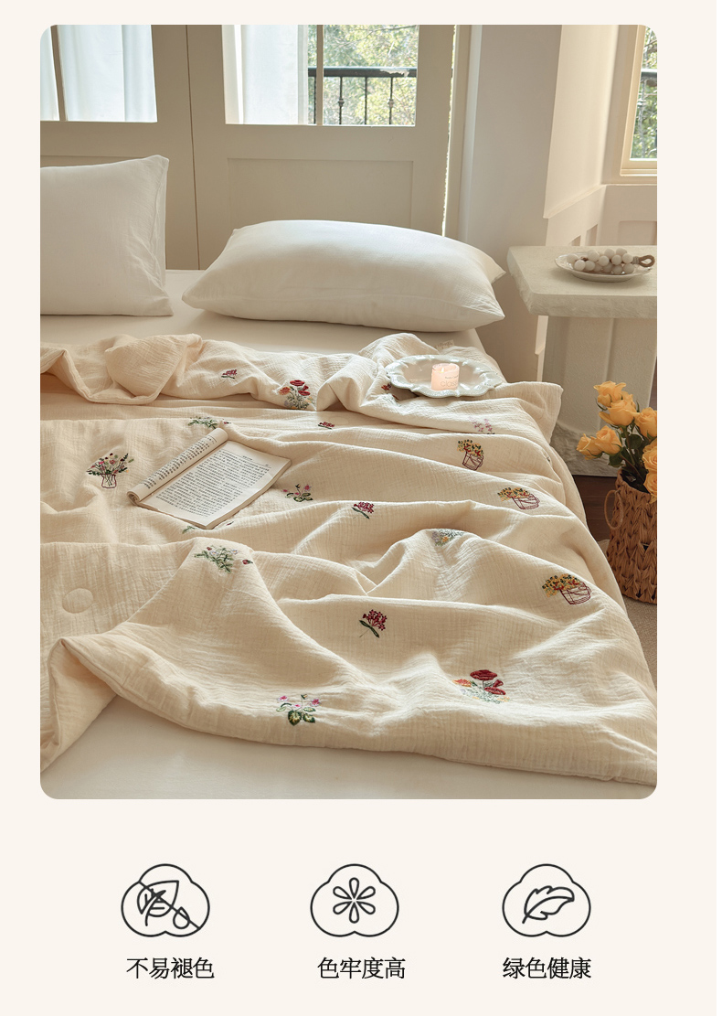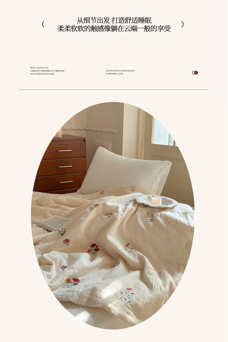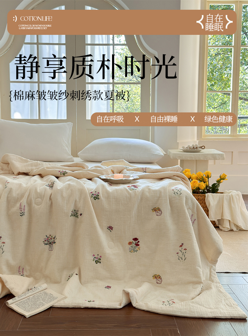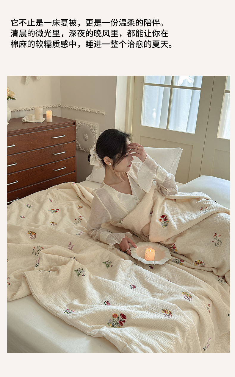 商品名称:木楌家居 2026新款棉麻皱皱纱刺绣款夏被-棉野序章系列 花野漫夏