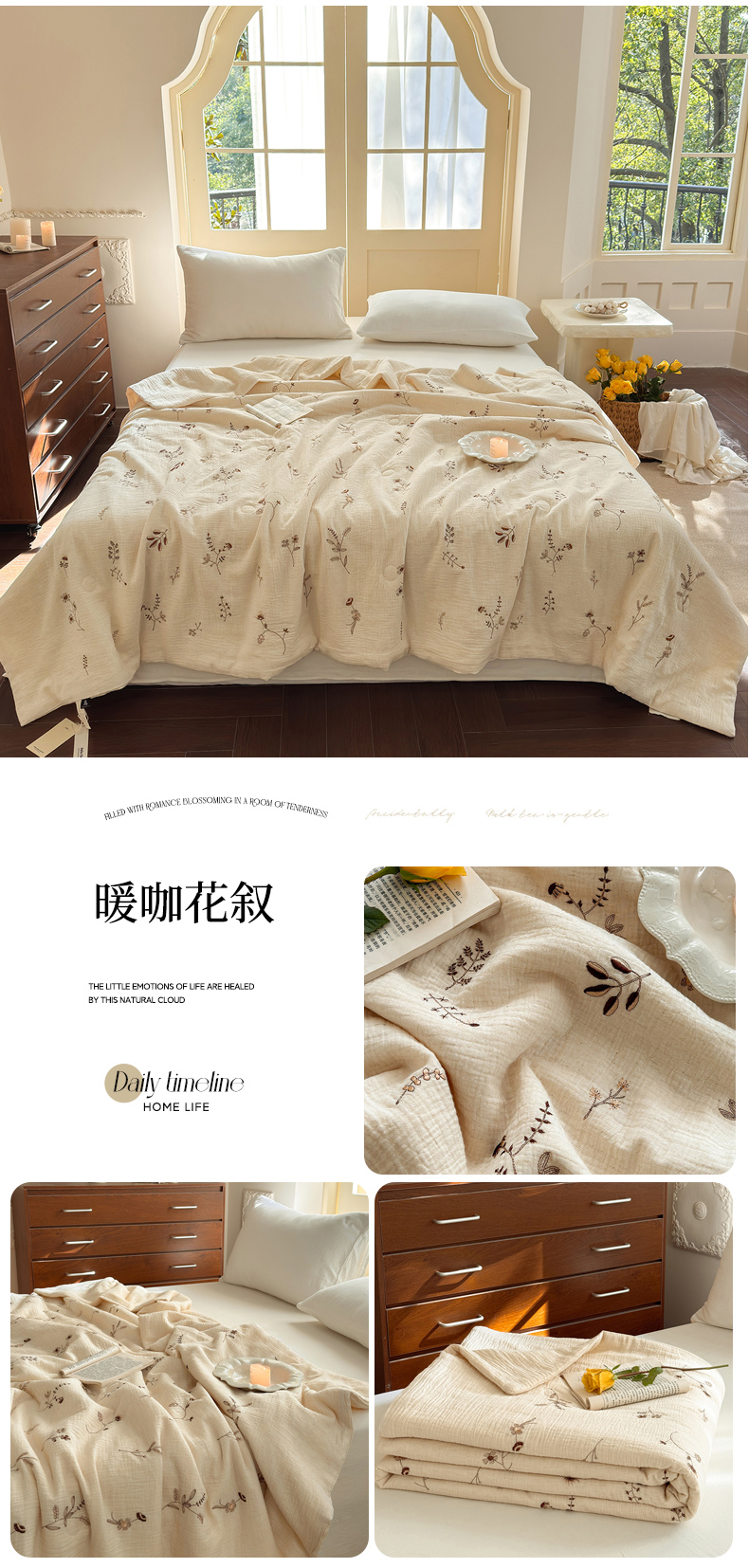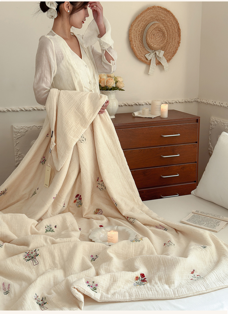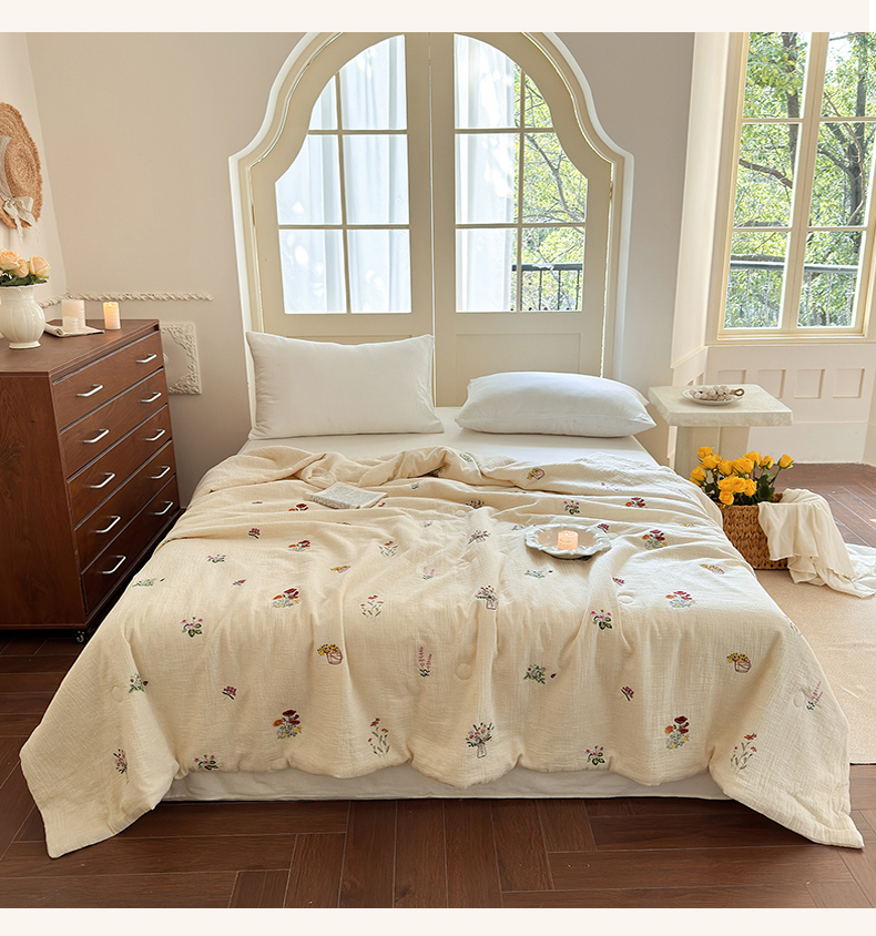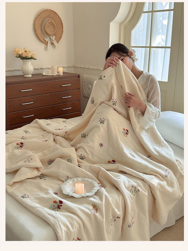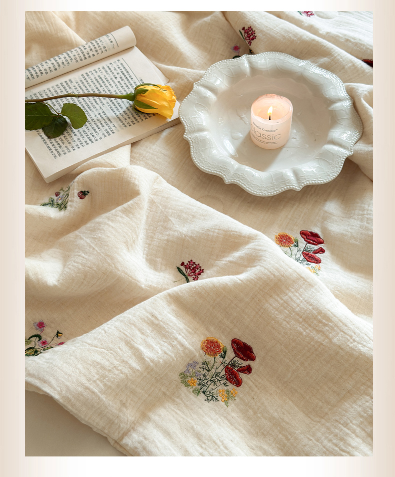 木楌家居 2026新款棉麻皱皱纱刺绣款夏被-棉野序章系列 花野漫夏