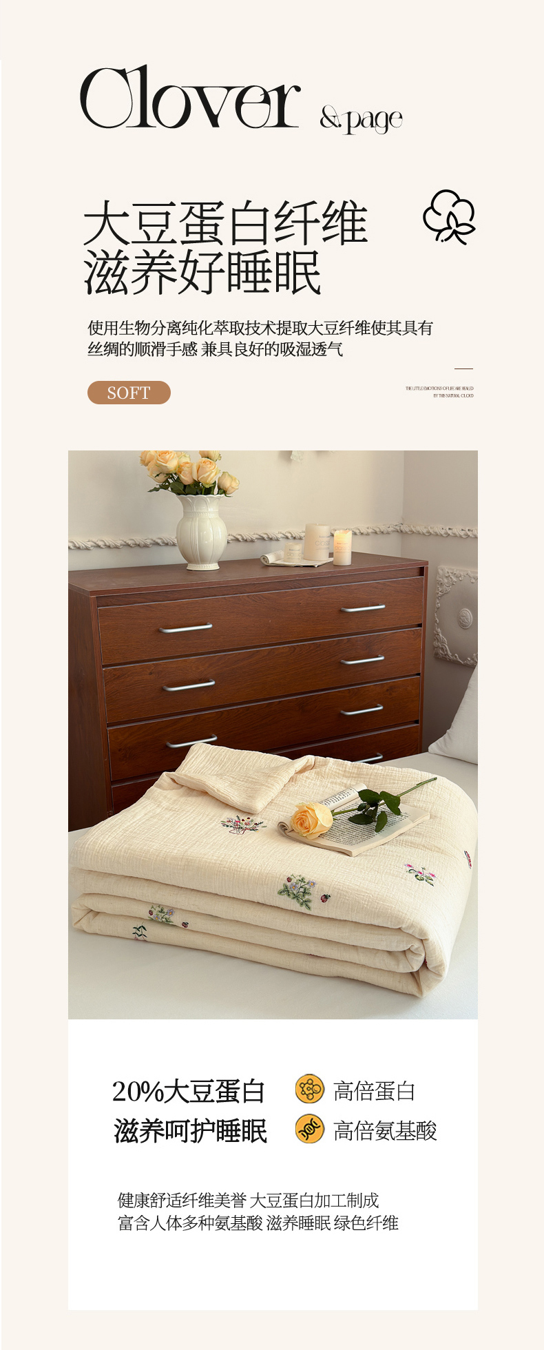(总)木楌 2025年新款双层皱皱纱刺绣款夏被大豆被,蓓蕾,小飞象,蝴蝶结,领结兔,枇杷叶,三叶草,小樱桃,幸运熊