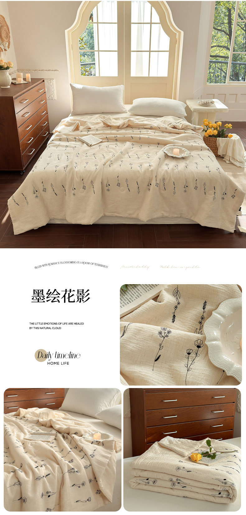 (总)木楌家居 2026新款棉麻皱皱纱刺绣款夏被-棉野序章系列,组合图,花野漫夏,墨绘花影,暖咖花叙,浅草风吟