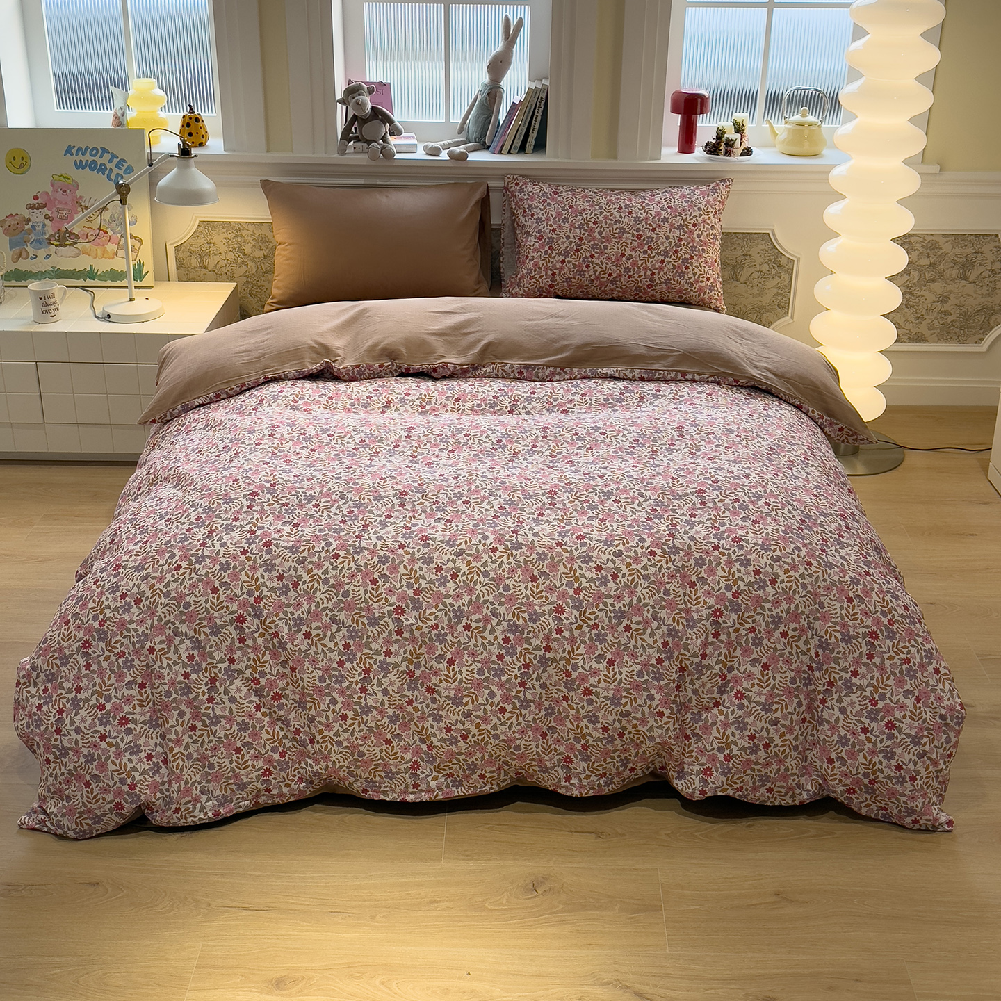 当前位置: 91家纺网 > 商品网购 > 床品套件 > 四件套 > 全棉普通四件套 > 呗旺鹿 2026新款春暖花开之全棉纯棉双层纱花草法式四件套 花野绮境棕