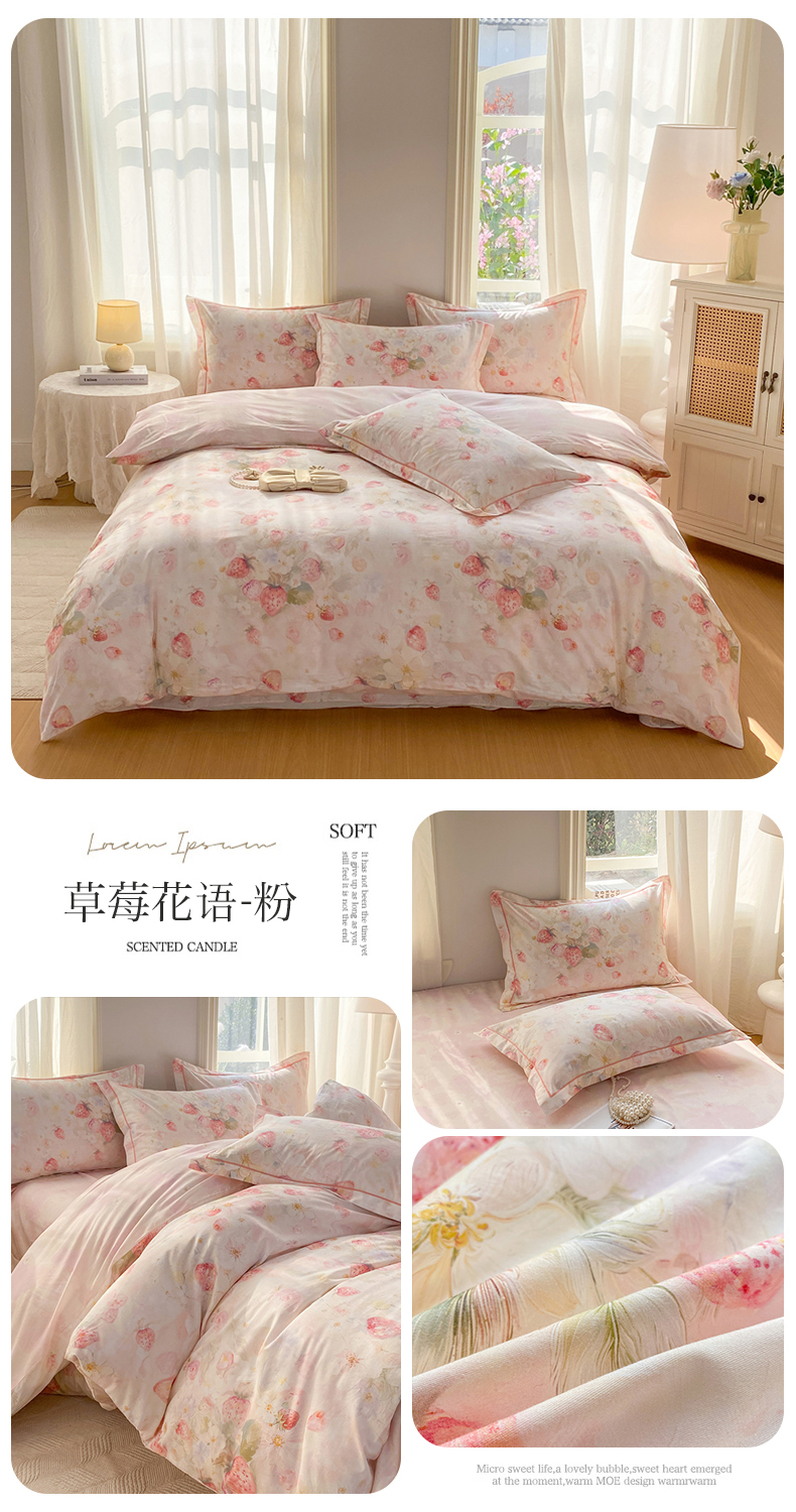 凌鼎 2026新款全棉数码印花四件套 草莓花语-粉