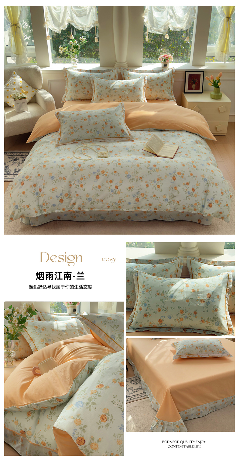 当前位置: 91家纺网 > 商品网购 > 床品套件 > 四件套 > 全棉普通四件套 > 铭博家纺 2026新款13070新款100%全棉纯棉印花工艺款吊边四件套 烟雨江南-兰