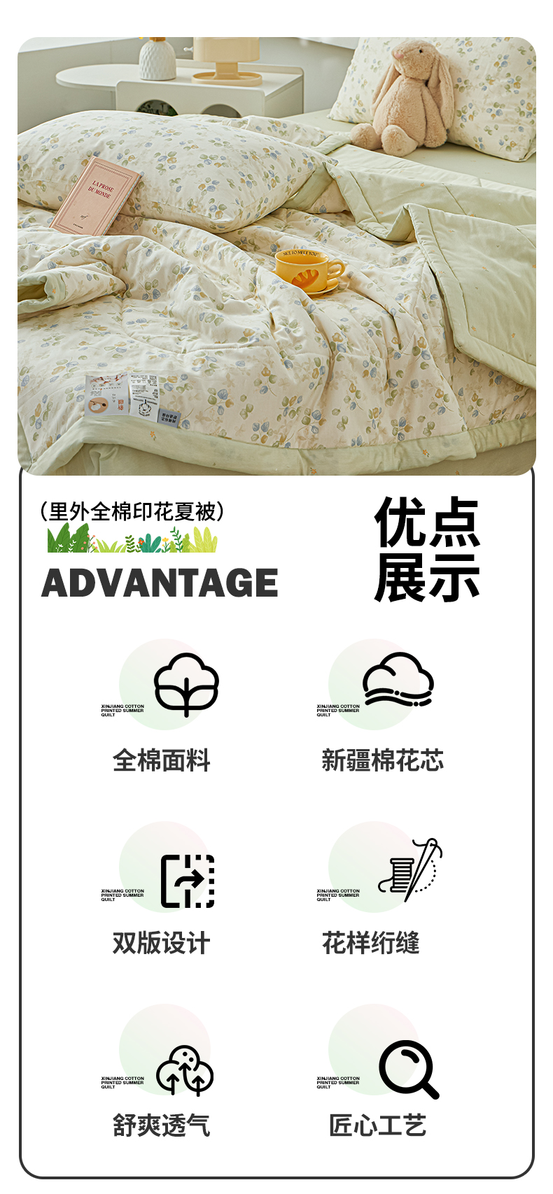 • 适用季节: 空调被/夏凉被