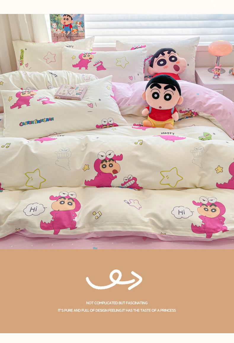 当前位置: 91家纺网 > 商品网购 > 床品套件 > 四件套 > 全棉普通四件套 > 暮思家居 2026新款正版授权蜡笔小新全棉纯棉四件套系列 百变小新
