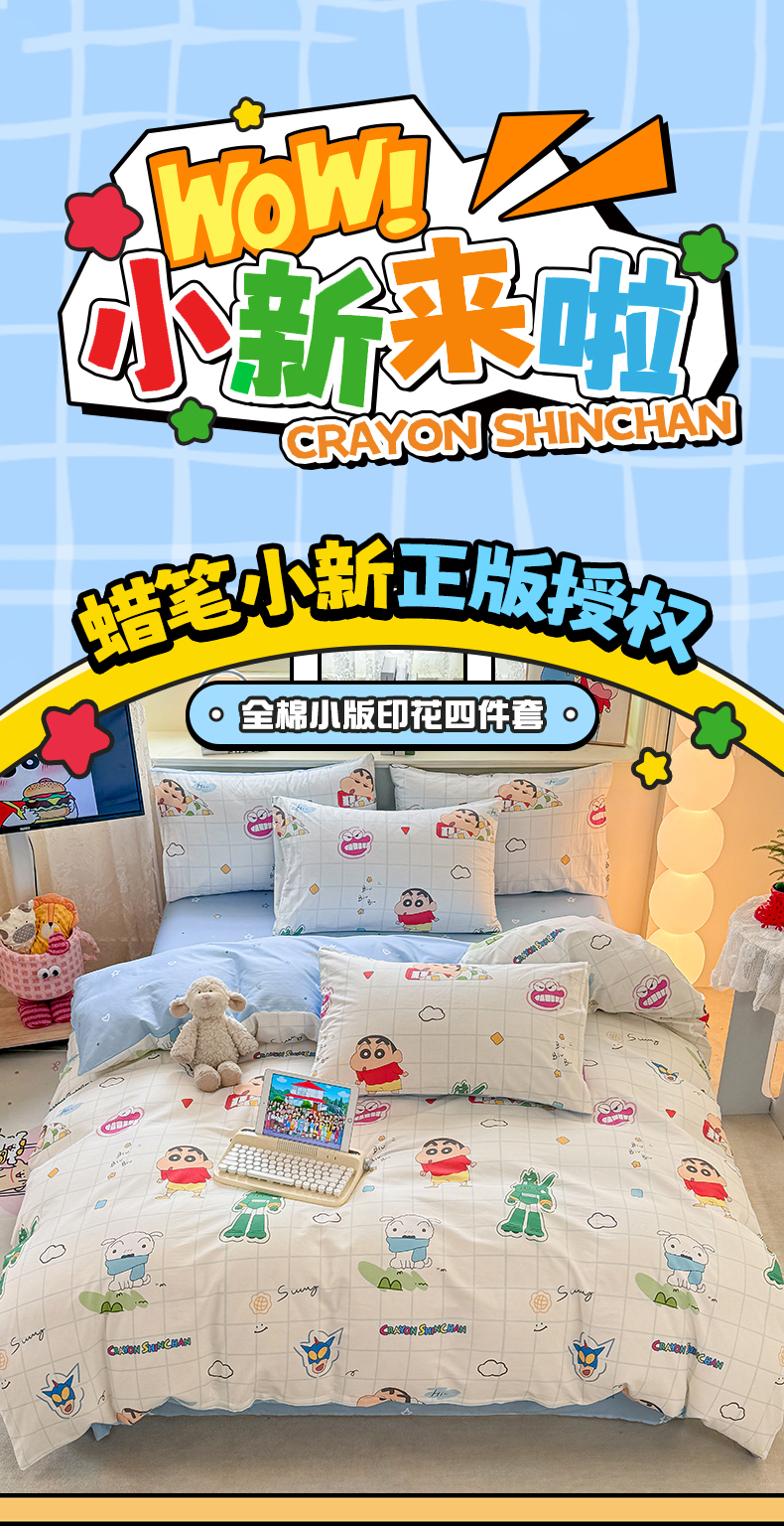 当前位置: 91家纺网 > 商品网购 > 床品套件 > 四件套 > 全棉普通四件套 > 博雅 2026新款蜡笔小新纯棉全棉四件套 小版-小新格子屋