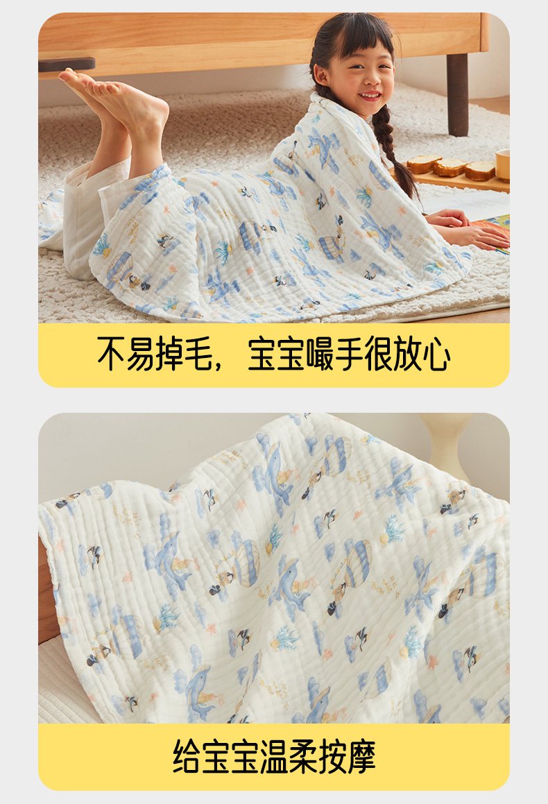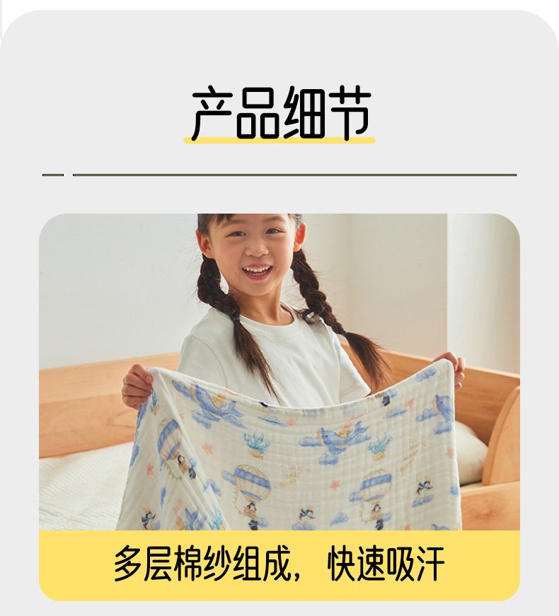 商品名称:嗨生活 2026新款A类婴幼儿童夏凉空调被子浴巾六层纱布毛巾被纯棉办公室幼儿园午睡盖毯子 奇妙世界