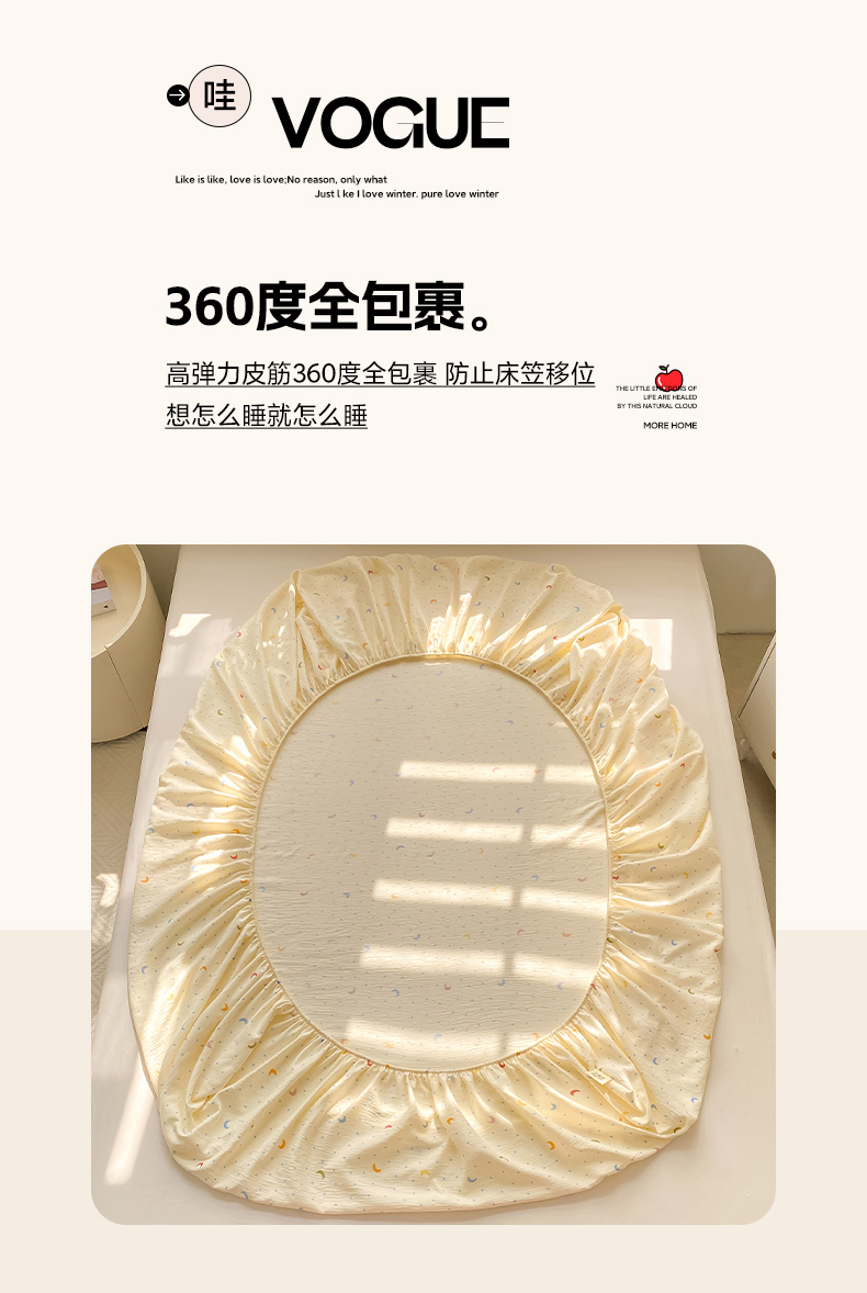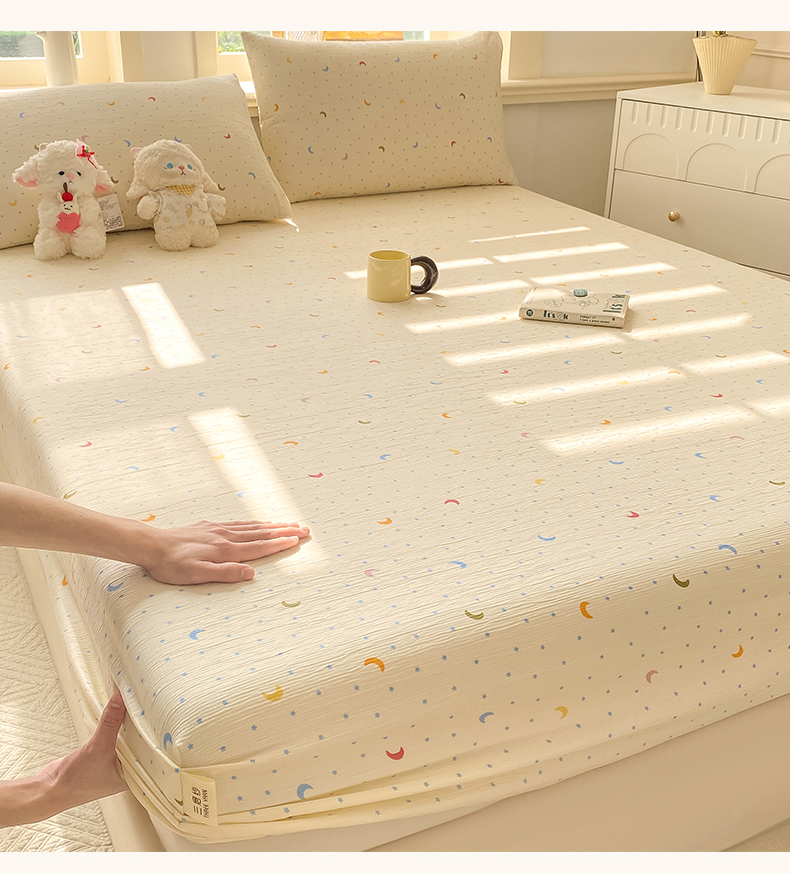 • 91家纺网 家纺一手货源 找家纺 眠势力 2026新款皱皱三层纱床笠三件套云朵床罩单件床垫保护套四季款 南瓜派【三层皱皱纱床笠】