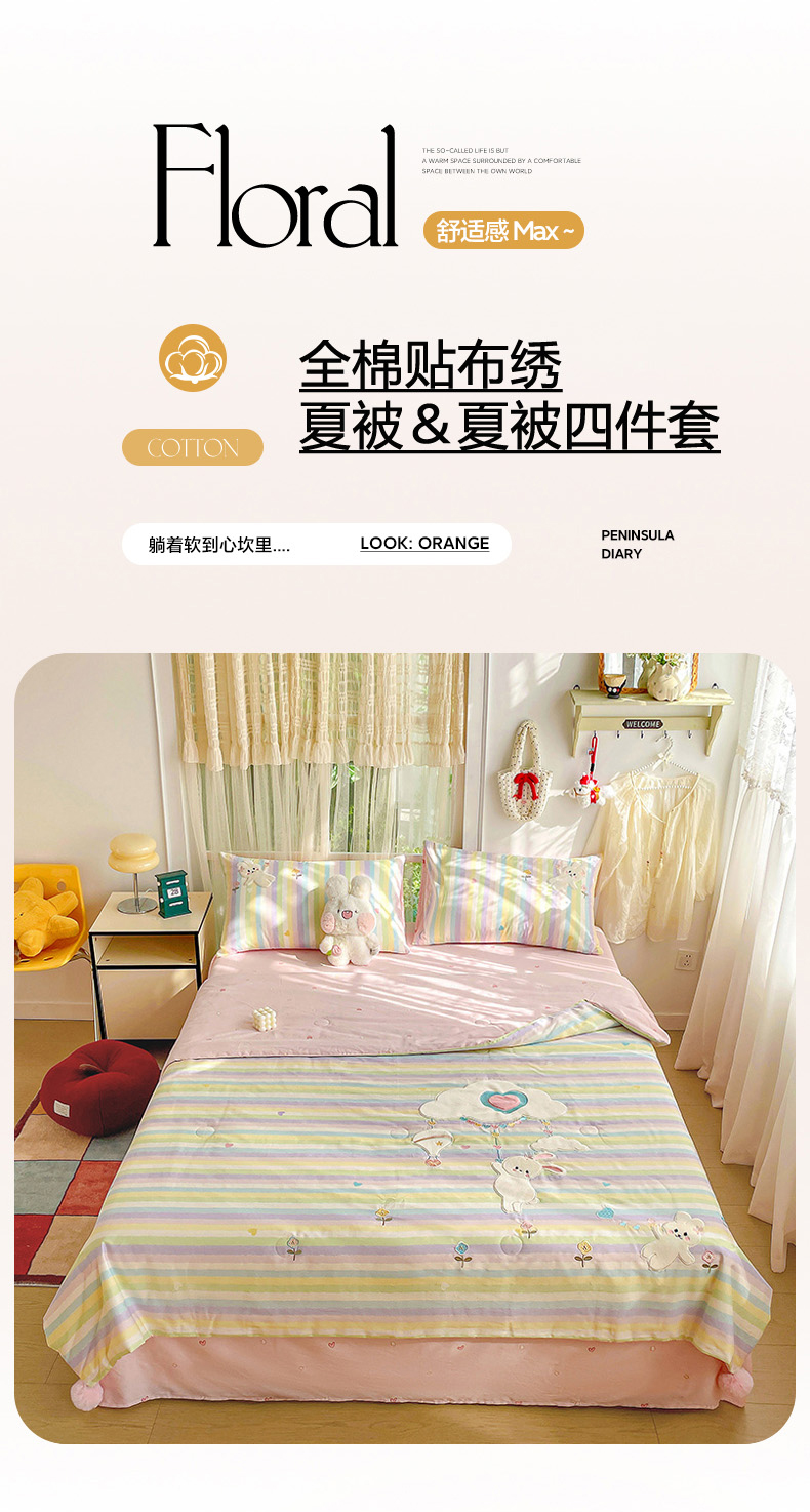 (总)暖意家纺 2026新款全棉春贴布绣云朵兔夏被系列