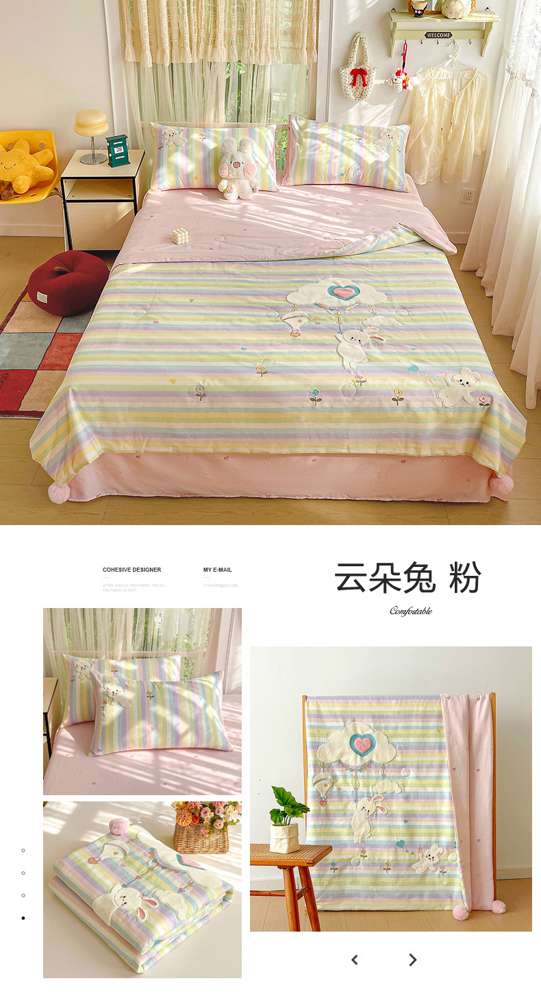 商品名称:(总)暖意家纺 2026新款全棉春贴布绣云朵兔夏被系列