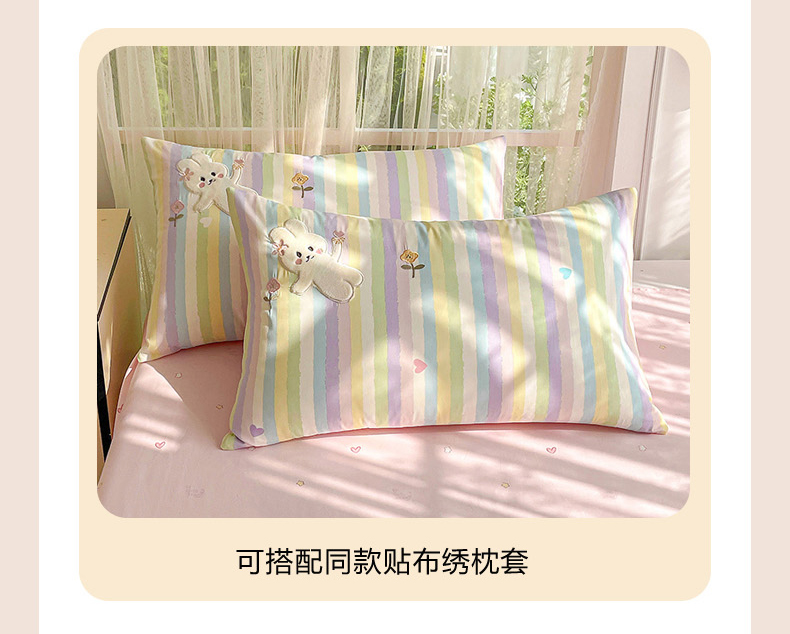 (总)暖意家纺 2026新款全棉A类母婴级60支水洗棉贴布绣三四件套,萌萌熊,粉粉兔,可爱恐龙
