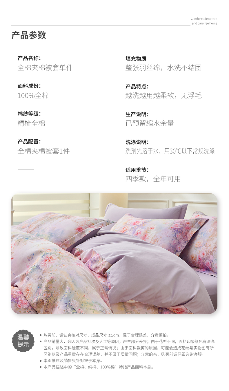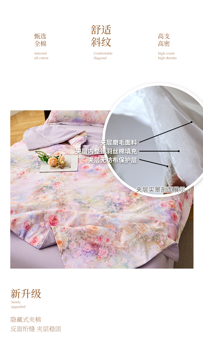 商品名称:元元家居(元元被业) 2026新款全棉13372套件及单品【印花款】-夹棉被套 红颜